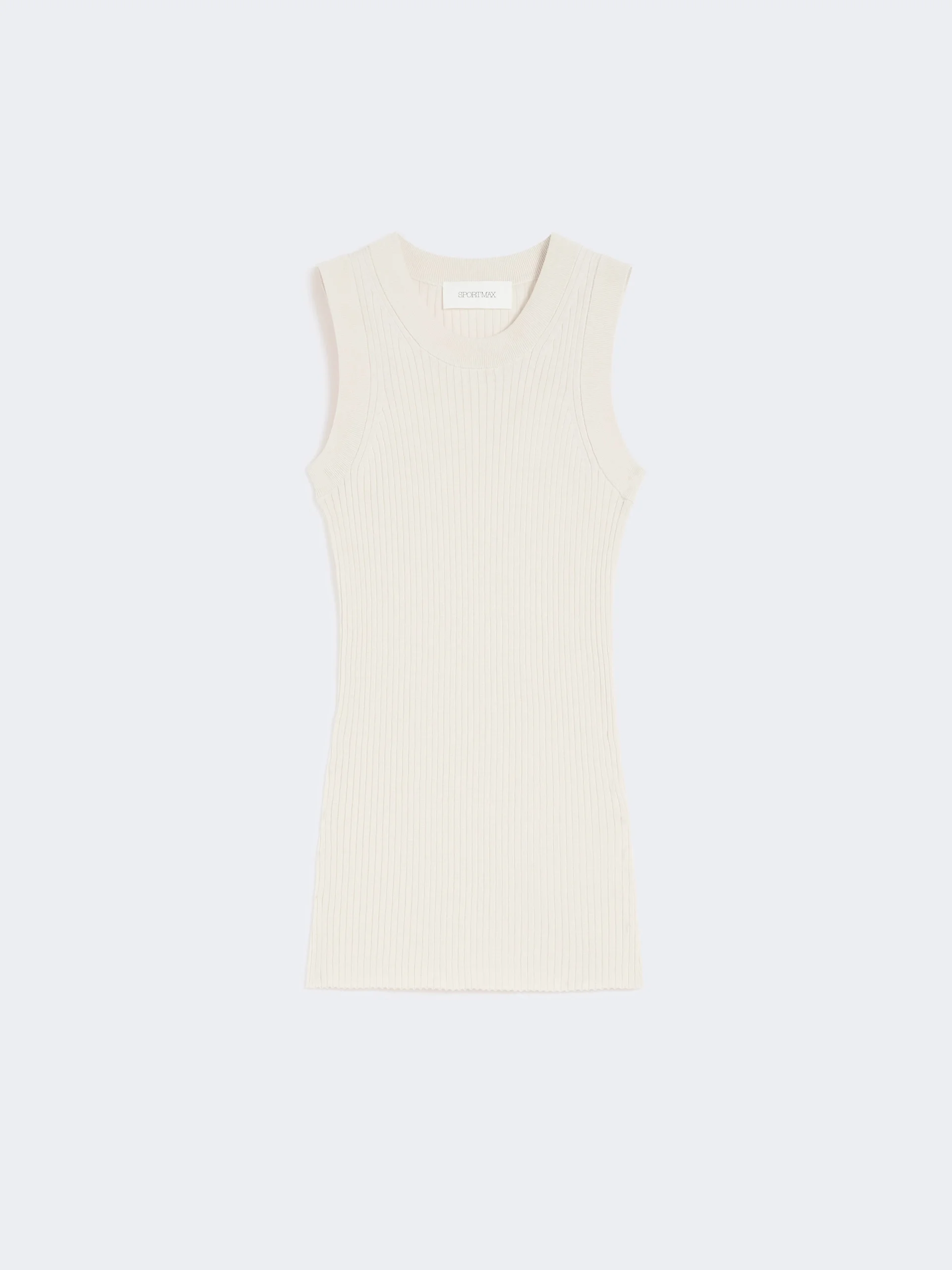 DETAILS Rib-knit pure cotton tank top with a drop-stitching motif along the neck and armholes. The naturally snug-fitting piece is embellished with narrow ribbing on the neckline and armholes. - Vest top in pure cotton knit fabric - Slim cut - Rounded neckline - Regular fit COMPOSITION AND CARE 100% cotton. Hand wash cold (40°c max); do not bleach; do not tumble dry; flat drying in the shade; cool iron; professionally dry clean perchloroethylene - mild process; do not wet clean.; iron with a cloth between.; using neutral detergent. Distributed by Max Mara S.r.l., registered office in Reggio Emilia (Italy), Via Giulia Maramotti 4, 42124 (IT) Collection: Sportmax Product code: 2361016206002 - SPXTIONE