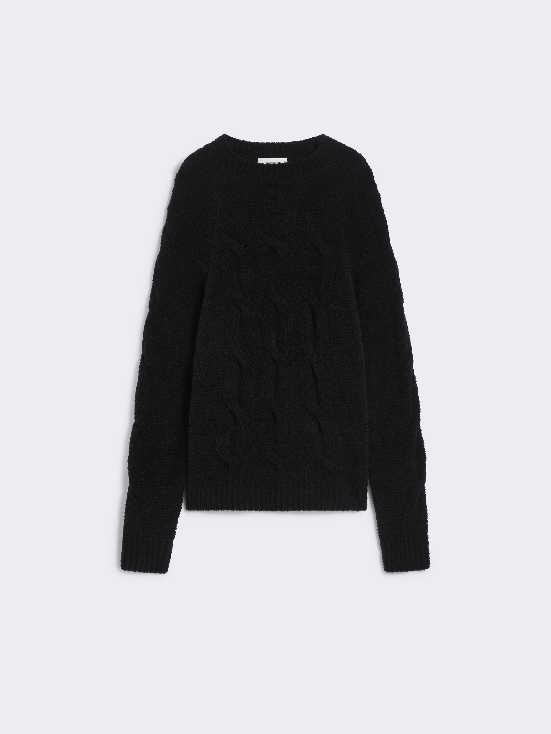 DETAILS Soft, oversized sweater featuring cable knit detailing on the bust and along the centre of the sleeves. Raglan cut with drop stitching on the sleeve. Soft and fine wool-blend yarn jumper Oversize fit Raised collar Cable knit on the bust and centre of the sleeve Raglan cut with drop stitching Ribbed-knit neckline and edges Wide fit COMPOSITION AND CARE 80% wool, 20% polyamide. Hand wash cold (40°c max); do not bleach; do not tumble dry; flat drying in the shade; cool iron; professionally dry clean perchloroethylene - mild process; do not wet clean.; iron with a cloth between.; using neutral detergent. Distributed by Max Mara S.r.l., registered office in Reggio Emilia (Italy), Via Giulia Maramotti 4, 42124 (IT)