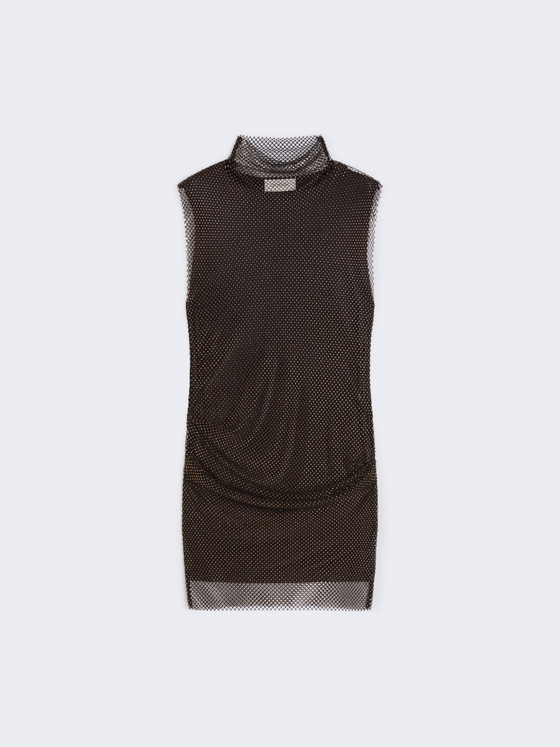 DETAILS Sleeveless dress made of mesh, decorated with applied rhinestones. The soft collar and feminine fit are accompanied by an original construction with asymmetrical pleats on the side. Sleeveless dress in technical mesh with applied rhinestones Feminine fit Crater neck with draping and sleeveless line Asymmetrical draping motif on the hips Sleeveless slip in viscose jersey Fit COMPOSITION AND CARE Jersey dress jersey fabric 97% polyester, 3% elastane; - exclusive of decoration. Petticoat 100% viscose. Jersey dress: hand wash cold (40°c max); do not bleach; do not tumble dry; flat drying in the shade; do not iron; do not dry clean; do not wet clean.; Using neutral detergent.; Don’t rub. Petticoat: do not wash; do not bleach; do not tumble dry; cool iron; professionally dry clean perchloroethylene - mild process; do not wet clean.; Iron with a cloth between. Distributed by Max Mara S.r.l., registered office in Reggio Emilia (Italy), Via Giulia Maramotti 4, 42124 (IT)