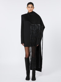DETAILS Wraparound mini dress in soft double-faced pure wool broadcloth. An innovative design: the front-inset scarf detail is decorated with long coated fabric fringes. Lined mini dress in double-faced pure wool fabric Slim fit Funnel-neck Scarf applique with coated fabric fringes Slim fit COMPOSITION AND CARE Fabric 100% virgin wool; - except joining thread; decorations in 100% polyester; lining 55% polyester, 45% viscose. Do not wash; do not bleach; do not tumble dry; cool iron; professionally dry clean perchloroethylene - mild process; do not wet clean.; remove the decorations before washing. Distributed by Max Mara S.r.l., registered office in Reggio Emilia (Italy), Via Giulia Maramotti 4, 42124 (IT)