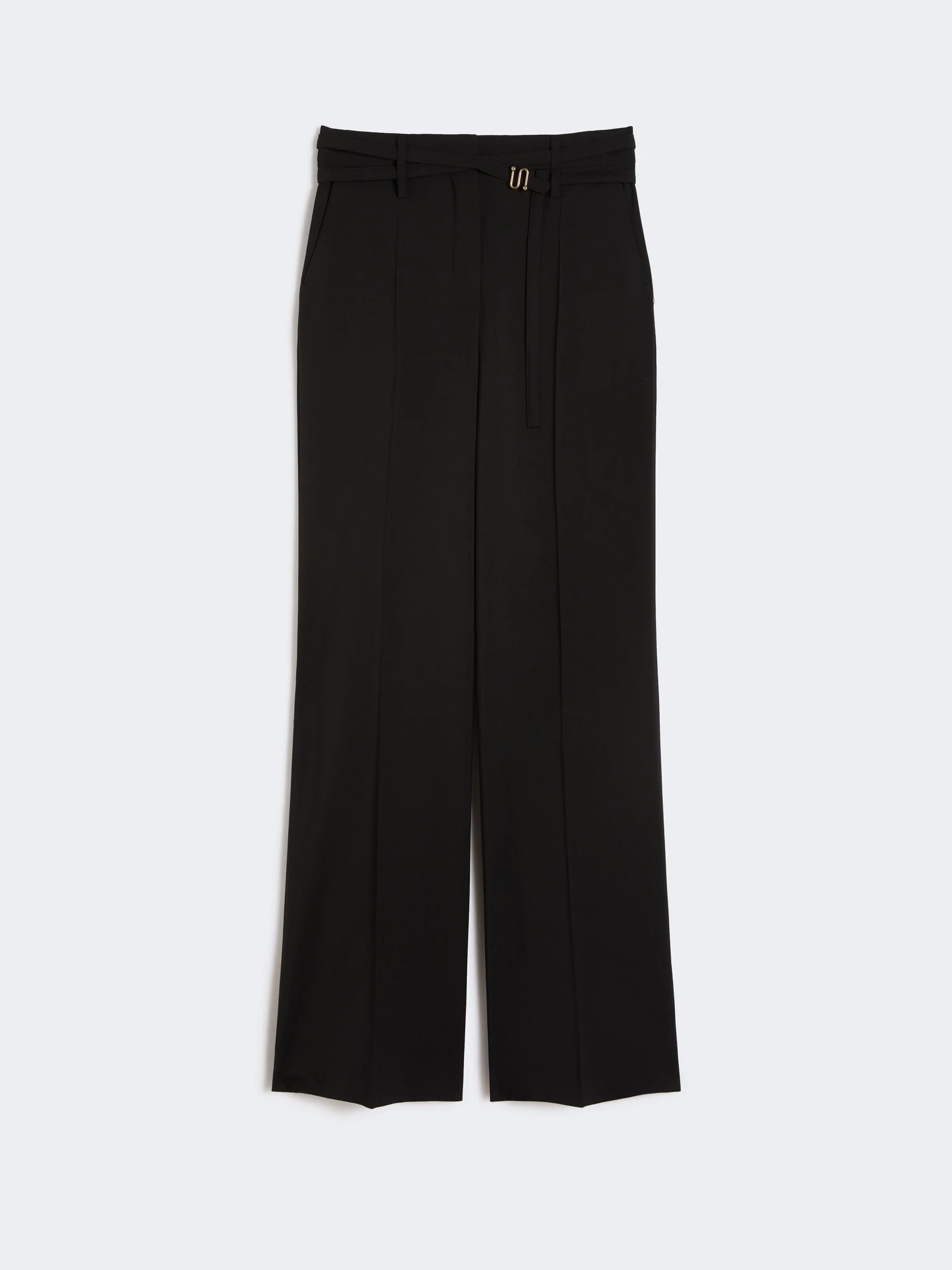 DETAILS Low-rise flared trousers with tailored construction and customised internal waistband. The style features a double-wrap belt at the waist and a metal S-buckle, an iconic element of the collection. - Natural stretch pure wool canvas trousers - Customised waistband interior - Double-wrap fabric belt with S-shaped metal buckle - Slant side pockets and back welt pockets - Regular fit COMPOSITION AND CARE 100% virgin wool. Do not wash; do not bleach; do not tumble dry; cool iron; professionally dry clean perchloroethylene - mild process; do not wet clean.; wash the belt in a net sack. Distributed by Max Mara S.r.l., registered office in Reggio Emilia (Italy), Via Giulia Maramotti 4, 42124 (IT) Collection: Sportmax Product code: 2131016106004 - SPXCERA