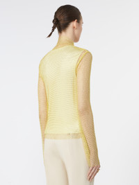 DETAILS Long-sleeved T-shirt made of mesh with applied rhinestones. The raised cowl neck creates a delicate drape, which is also repeated at the hem of the garment. Lined model with jersey tank top. Technical mesh T-shirt with applied rhinestones Straight and soft fit Slightly draped cowl neck Asymmetrical draping motif at the hem of the garment Lined with a matching viscose jersey tank top Fit COMPOSITION AND CARE Knitted blouse jersey fabric 97% polyester, 3% elastane; - exclusive of decoration. Jersey top 100% viscose. Knitted blouse: hand wash cold (40°c max); do not bleach; do not tumble dry; flat drying in the shade; do not iron; do not dry clean; do not wet clean.; Using neutral detergent.; Don’t rub. Jersey top: do not wash; do not bleach; do not tumble dry; cool iron; professionally dry clean perchloroethylene - mild process; do not wet clean.; Iron with a cloth between. Distributed by Max Mara S.r.l., registered office in Reggio Emilia (Italy), Via Giulia Maramotti 4, 42124 (IT)