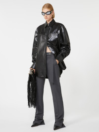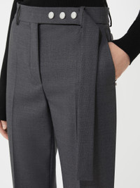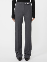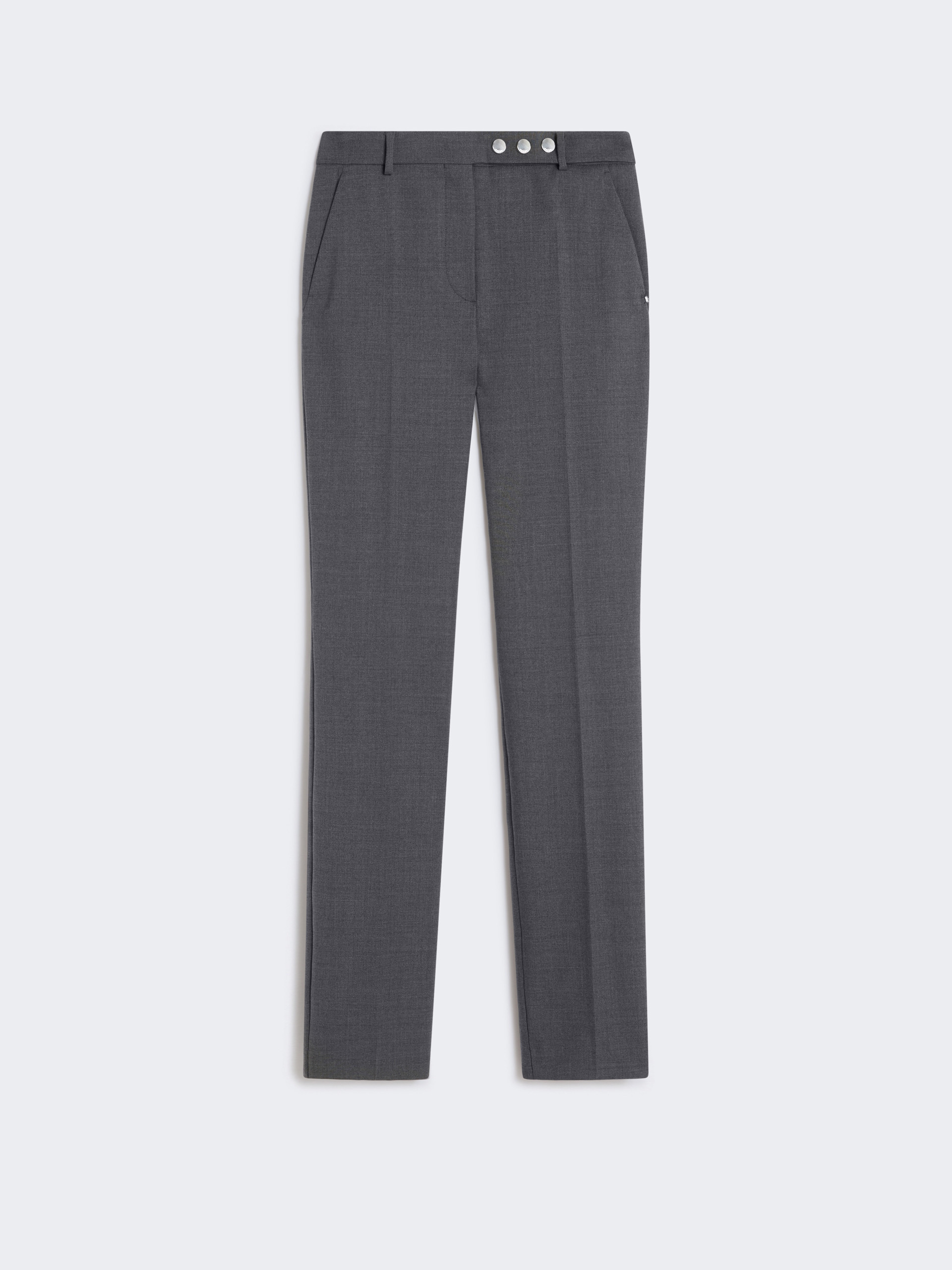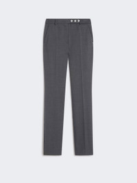 DETAILS Cigarette trousers in soft stretch wool, with zipped slit at the ankle that accentuates the leg’s slender line. The long flap at the waist falls freely at the front. Natural stretch pure wool trousers Cigarette fit with slightly low waist Closure with custom snap buttons and long flap with belt effect Customised waistband interior Trouser crease on front and back with zipped ankle slit at the back Slant side pockets and back welt pockets Regular fit COMPOSITION AND CARE 100% virgin wool. Do not wash; do not bleach; do not tumble dry; cool iron; professionally dry clean perchloroethylene - mild process; do not wet clean. Distributed by Max Mara S.r.l., registered office in Reggio Emilia (Italy), Via Giulia Maramotti 4, 42124 (IT)