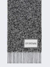 DETAILS Jacquard alpaca and wool blend scarf, with maxi logo on one side for modular styling. With fringes and label on the front. Boucle wool and alpaca blend scarf Long braided fringes, 10 cm long Maxi jacquard logo on the back Maxi custom label on the front Measurements: 30 x 245 cm COMPOSITION AND CARE 73% wool, 22% alpaca, 5% polyamide. Distributed by Max Mara S.r.l., registered office in Reggio Emilia (Italy), Via Giulia Maramotti 4, 42124 (IT)