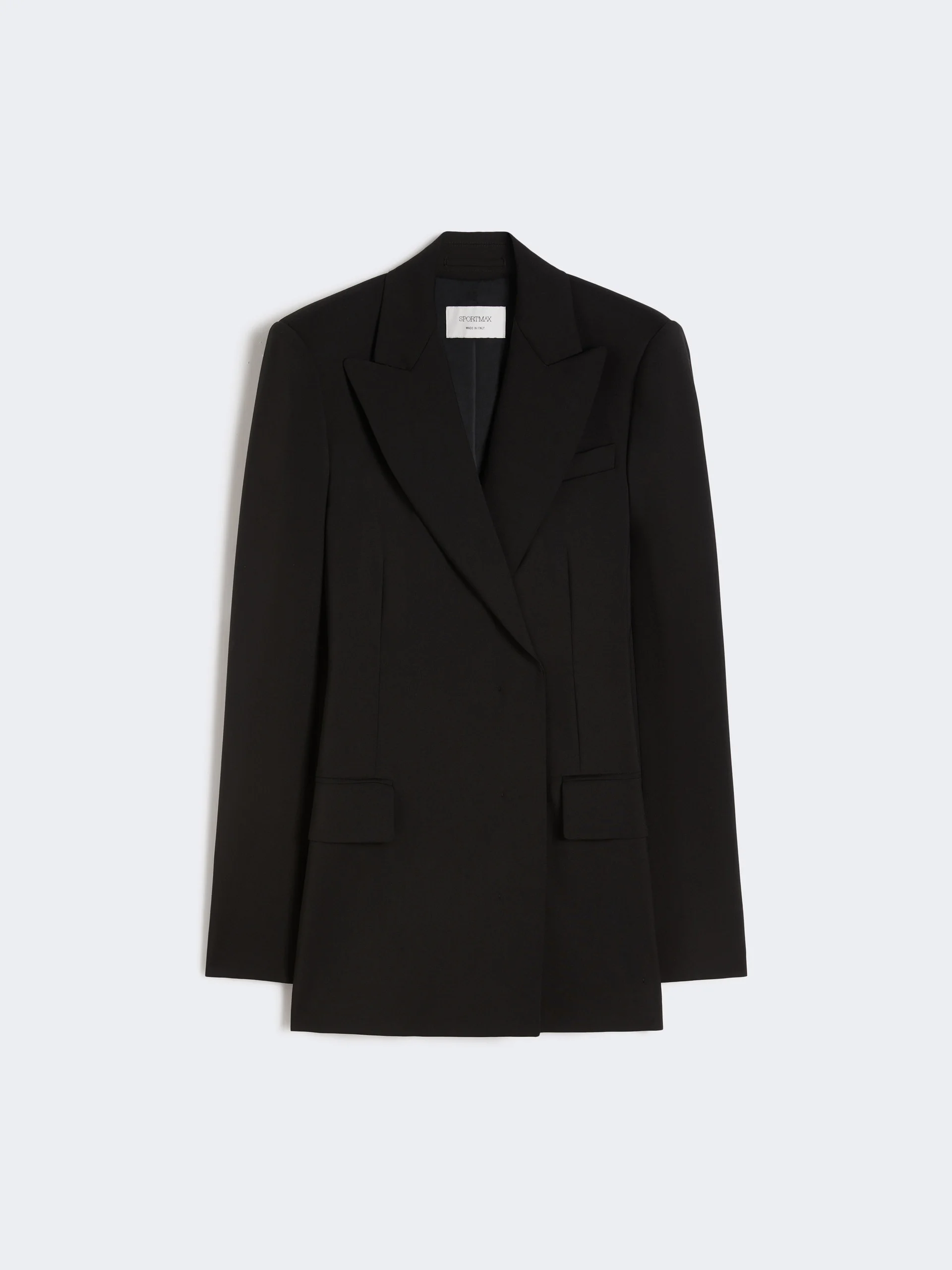 DETAILS Tailored blazer in luxurious natural stretch wool. The peak lapel and breast pocket evoke classic men's tailoring, modernised by the concealed fastening. - Natural stretch pure wool canvas blazer - Collar with peak lapels - Side pockets with double welt and flap - Double-breasted fastening with hidden buttons - Fitted waist COMPOSITION AND CARE Fabric 100% virgin wool; lining 70% acetate, 30% polyester; sleeves lining 97% viscose, 3% acetate. Do not wash; do not bleach; do not tumble dry; cool iron; professionally dry clean perchloroethylene - mild process; do not wet clean.; put this item into a string bag before washing it.; wash the garment while it is fastened. Distributed by Max Mara S.r.l., registered office in Reggio Emilia (Italy), Via Giulia Maramotti 4, 42124 (IT) Collection: Sportmax Product code: 2041016106004 - SPXFATE