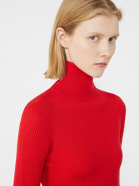 DETAILS Pure wool turtleneck jumper in a rib knit for a naturally snug fit. With a turn-down polo neck and long sleeves. Pure virgin wool yarn jumper Fitted Polo neck Hip length Fitted COMPOSITION AND CARE 100% virgin wool. Hand wash cold (40°c max); do not bleach; do not tumble dry; flat drying in the shade; cool iron; professionally dry clean perchloroethylene - mild process; do not wet clean.; iron with a cloth between.; using neutral detergent. Distributed by Max Mara S.r.l., registered office in Reggio Emilia (Italy), Via Giulia Maramotti 4, 42124 (IT)