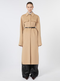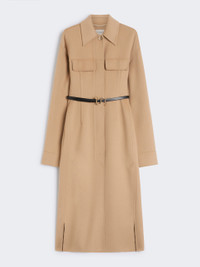 DETAILS Fitted coat in double-sided wool, with darts and shaped sides that define the silhouette. In addition to the fastening, it has a leather belt with an S-shaped buckle that cinches at the waist. Pure wool double drap fitted coat Fitted waist with overlapping side slits Shirt collar and hidden buttoning with visible top metal button Leather belt with S-shaped buckle Shirt cuffs with two buttons Regular fit COMPOSITION AND CARE Coat fabric 100% virgin wool; - except joining thread; with belt in cattle. Coat: do not wash; do not bleach; do not tumble dry; cool iron; professionally dry clean perchloroethylene - mild process; do not wet clean. Belt: do not wash; do not bleach; do not tumble dry; do not iron; do not dry clean; do not wet clean. Distributed by Max Mara S.r.l., registered office in Reggio Emilia (Italy), Via Giulia Maramotti 4, 42124 (IT)