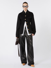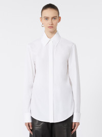 DETAILS Trousers in double cotton and viscose cady, with a straight line and slightly low waist. High belt loops at the waist support the double-wrap belt with S-buckle. A knitted insert on the inside of the leg adds an original detail. Straight trousers in double cotton and viscose cady, with ribbed knit inserts Straight fit with slightly low waist and wide leg Customised waistband interior. High belt loops with double-wrap fabric belt with S-buckle Knee-length cut and ribbed knit inserts on the inside of the leg Regular fit COMPOSITION AND CARE 100% cotton. Machine wash cold delicate cycle; do not bleach; do not tumble dry; line drying in the shade; cool iron; professionally dry clean perchloroethylene - mild process. Distributed by Max Mara S.r.l., registered office in Reggio Emilia (Italy), Via Giulia Maramotti 4, 42124 (IT)