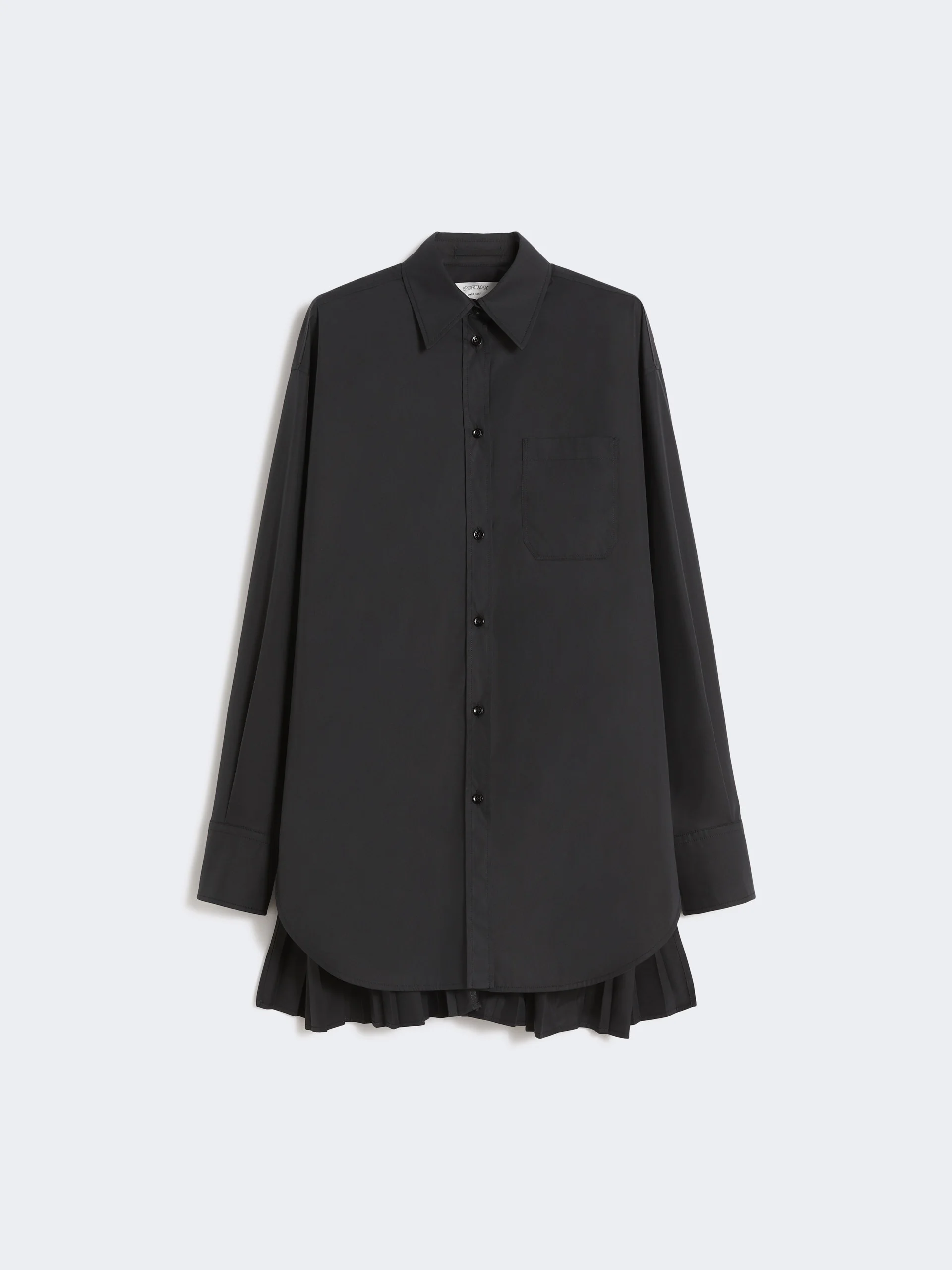 DETAILS Overshirt in cotton-blend canvas, featuring menswear-inspired lines and a breast pocket. The back is crafted with pleats, with a removable metal chain attached to the sides. - Cotton blend overshirt - Shirt collar with visible buttoning - Rounded hem, shorter on the front - Pleated insert on the back with removable metal chain - Oversize fit COMPOSITION AND CARE 77% cotton, 23% polyester. Do not wash; do not bleach; do not tumble dry; cool iron; professionally dry clean perchloroethylene - mild process; do not wet clean.; after washing fix the pleats by ironing them.; remove the chain before washing. Distributed by Max Mara S.r.l., registered office in Reggio Emilia (Italy), Via Giulia Maramotti 4, 42124 (IT) Collection: Sportmax Product code: 2191036106003 - SPXNESPOLA