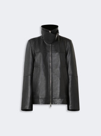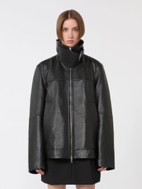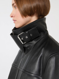 DETAILS Oversized leather jacket with utility-inspired details, such as a raised collar with removable storm flap and side pockets with maxi welts. - Vegetable-tanned leather jacket with quilted, lightly padded lining - Raised collar with fixed neck strap - Double slider metallic zip fastening - Side pockets with welts - Wide fit COMPOSITION AND CARE Style in lamb leather; lining in 100% polyester; with quilting in 100% polyester. Do not wash; do not bleach; do not tumble dry; do not iron; do not dry clean; do not wet clean.; do not wash or dry clean by fabric methods. clean only by leather and fur specialists.; protect the buckle before washing.; care should be taken with light-coloured garments and accessories because body heat could lead the leather to colour loss and staining. care should be taken when sitting on light-coloured surfaces, especially if damp. avoid lengthy exposure to direct light or heat sources. do not store garments in plastic bags for long periods. Distributed by Max Mara S.r.l., registered office in Reggio Emilia (Italy), Via Giulia Maramotti 4, 42124 (IT) Collection: Sportmax Product code: 2441026106002 - SPXCIOCCA
