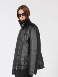 Oversized leather heavy jacket - black