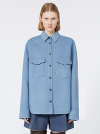 DETAILS A refined evolution of the oversized shirt, crafted from double-faced pure wool and featuring stitching on the yokes and patch pockets with shaped flaps. Double-faced shirt in pure virgin wool with a diagonal design Oversize fit Shirt collar with visible buttoning Patch pockets with flap Stitched yoke on shoulders and back Wide fit COMPOSITION AND CARE Fabric 100% virgin wool; - except joining thread. Do not wash; do not bleach; do not tumble dry; cool iron; professionally dry clean perchloroethylene - mild process; do not wet clean.; wash the garment while it is fastened.; turn the articles inside out before washing. Distributed by Max Mara S.r.l., registered office in Reggio Emilia (Italy), Via Giulia Maramotti 4, 42124 (IT)