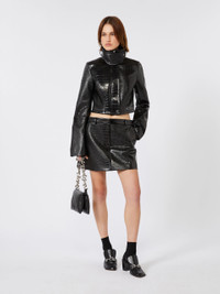 Patent leather cropped jacket with alligator print - BLACK
