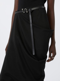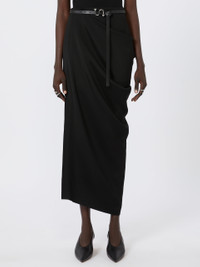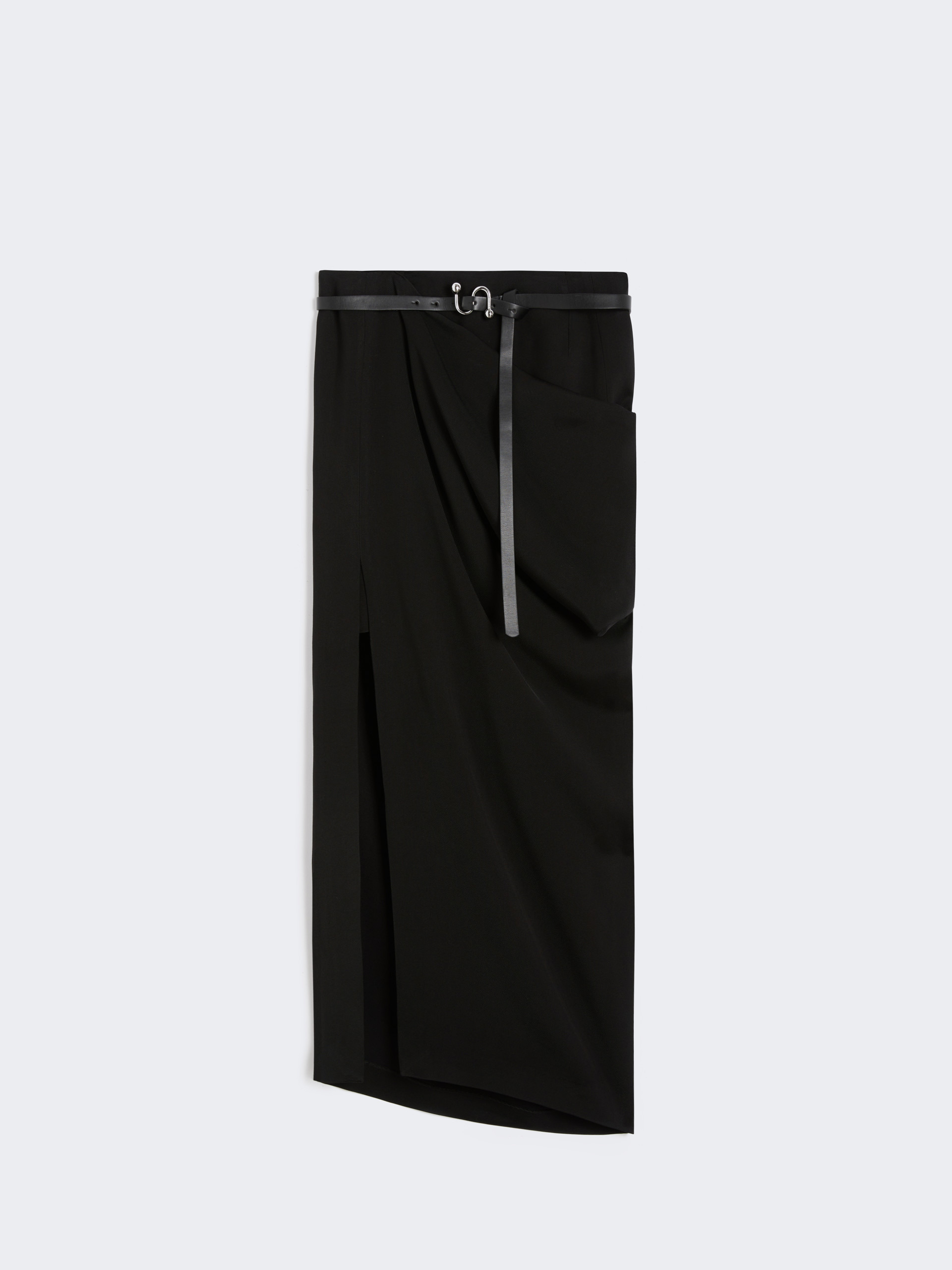 DETAILS Double-construction skirt, with a short inner part and a long outer part that drapes on the left side. The side slit and custom belt add femininity to the design. Asymmetrical skirt in heavy viscose twill fabric Regular fit Opened by a concealed zip on the back. Draped motif on the left side and slit on the right Belt with metal S-buckle Regular fit COMPOSITION AND CARE Skirt fabric 100% viscose; lining 100% polyester; with belt in polyester with polyurethane coating. Skirt: do not wash; do not bleach; do not tumble dry; cool iron; professionally dry clean perchloroethylene - mild process; do not wet clean.; Put this item into a string bag before washing it. Belt: do not wash; do not bleach; do not tumble dry; do not iron; do not dry clean; do not wet clean. Distributed by Max Mara S.r.l., registered office in Reggio Emilia (Italy), Via Giulia Maramotti 4, 42124 (IT)