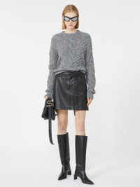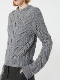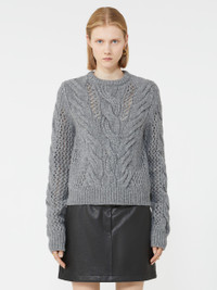 DETAILS Soft, warm wool blend yarn jumper with openwork cable knit on the body and sleeves. Ribbed details on the hem and cuffs Wool-blend jumper Regular fit Rounded neckline Cable knit and openwork stitch motif on the body and sleeves Ribbed hem and cuffs Regular fit COMPOSITION AND CARE 70% wool, 30% polyamide. Do not wash; do not bleach; do not tumble dry; cool iron; professionally dry clean perchloroethylene - mild process; do not wet clean.; iron with a cloth between. Distributed by Max Mara S.r.l., registered office in Reggio Emilia (Italy), Via Giulia Maramotti 4, 42124 (IT)