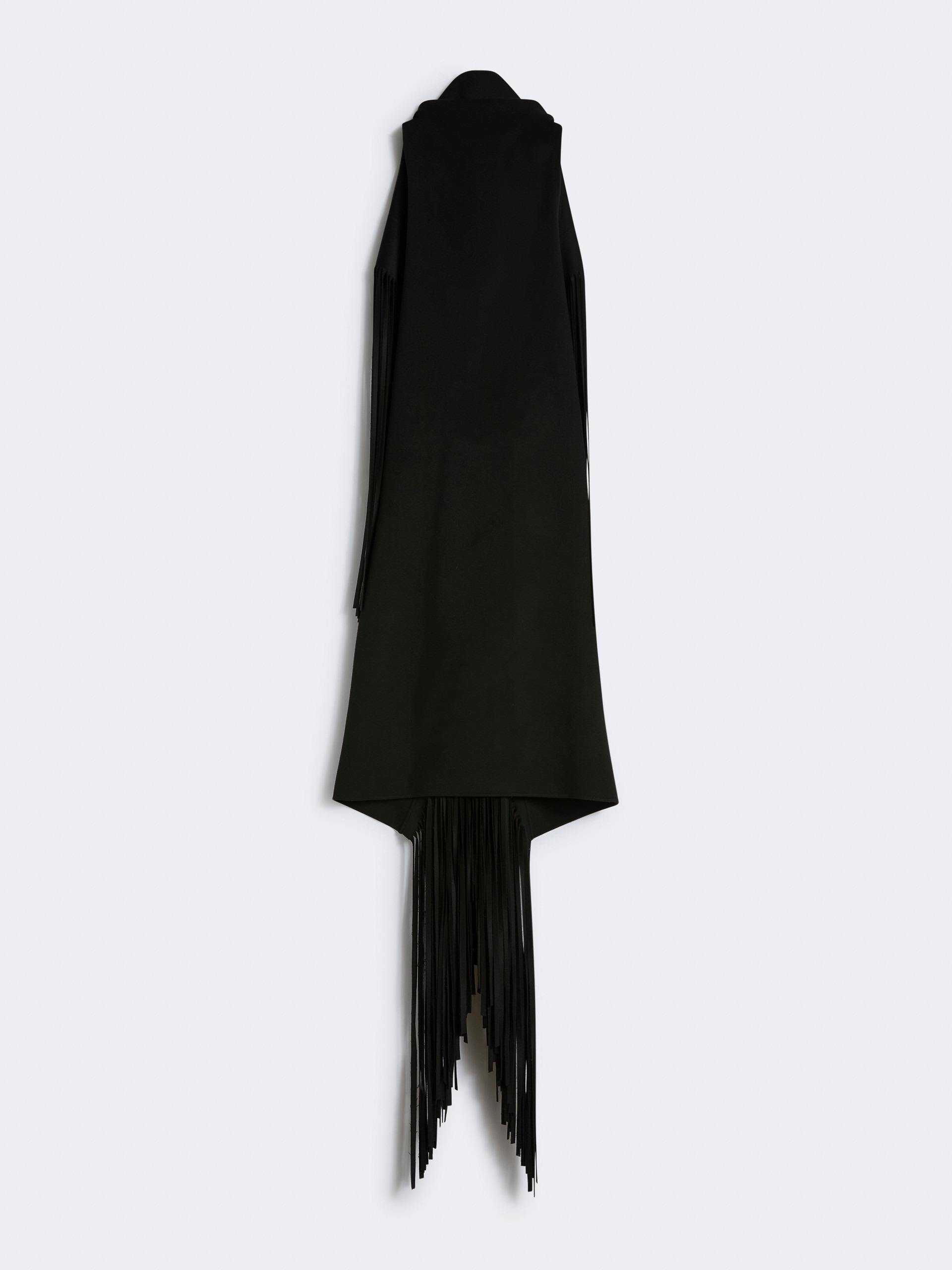 DETAILS New metropolitan femininity: this dress in soft wool broadcloth is set apart by its long fringe-embellished deep back neckline. Dress in double-faced pure wool fabric Slim fit that flares slightly at the hem Funnel-neck front and deep V-neck back Sleeveless model Raw-cut fringed detail on the back neckline Slim fit COMPOSITION AND CARE Fabric 100% virgin wool; - except joining thread. Do not wash; do not bleach; do not tumble dry; cool iron; professionally dry clean perchloroethylene - mild process; do not wet clean.; put this item into a string bag before washing it.; wash the garment while it is fastened. Distributed by Max Mara S.r.l., registered office in Reggio Emilia (Italy), Via Giulia Maramotti 4, 42124 (IT)