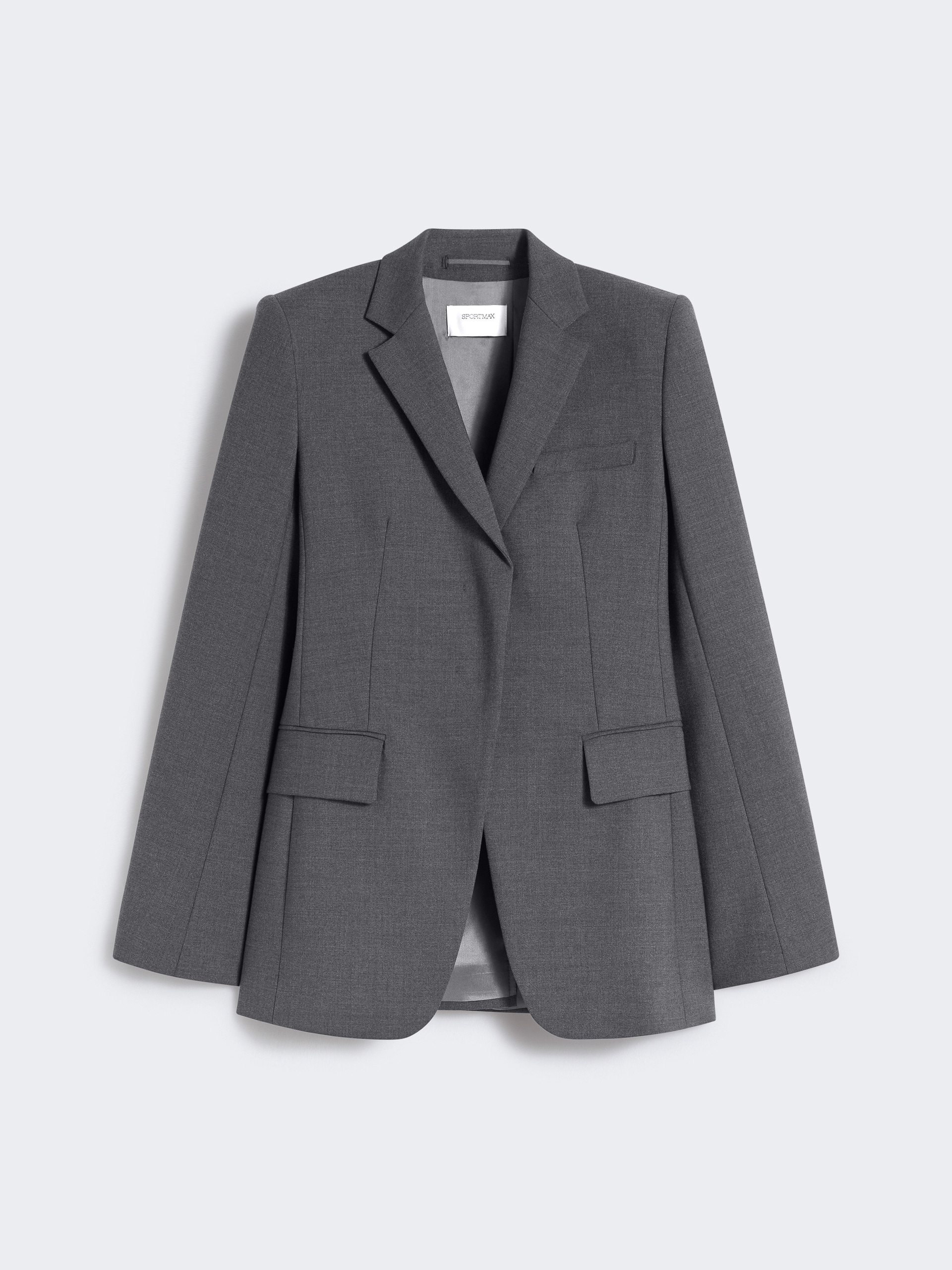 DETAILS Fitted jacket with darts and cuts that emphasize the silhouette. The garment features side pockets with flap and a breast pocket. Cuffs with slits and customised snap buttons. Stretch wool canvas jacket Fitted Lapel collar Concealed fastening with buttons Dropped line at the hem Lined Regular fit COMPOSITION AND CARE Fabric 100% virgin wool; lining 70% acetate, 30% polyester; sleeves lining 97% viscose, 3% acetate. Do not wash; do not bleach; do not tumble dry; cool iron; professionally dry clean perchloroethylene - mild process; do not wet clean.; wash the garment while it is fastened. Distributed by Max Mara S.r.l., registered office in Reggio Emilia (Italy), Via Giulia Maramotti 4, 42124 (IT)