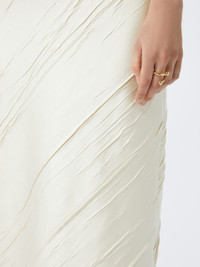 DETAILS Clean-cut pencil skirt made of bonded satin, decorated with irregular pleating. The resulting effect is a diagonal, dynamic and delicately three-dimensional pattern. Pencil skirt in bonded and pleated technical satin with bias cut Straight fit with low waist Back opening with concealed zip Darts at the waist and a central back slit Lined Regular fit COMPOSITION AND CARE Fabric 100% polyester; lining 100% polyester. Hand wash cold (40°c max); do not bleach; do not tumble dry; line drying in the shade; do not iron; professionally dry clean perchloroethylene - mild process; do not wet clean. Distributed by Max Mara S.r.l., registered office in Reggio Emilia (Italy), Via Giulia Maramotti 4, 42124 (IT)