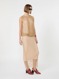 DETAILS Mesh dress with rhinestones applied all over for a sparkling effect. Sleeveless, with a soft top, it is completed with a matching tank-top style jersey slip. - Mesh dress with rhinestones and jersey slip - Loose cut on the bodice and straight on the skirt - Rounded neckline - Sleeveless style - Elasticated insert at the waist for a bubble effect on the top - Regular fit COMPOSITION AND CARE Jersey dress jersey fabric 95% polyester, 5% elastane; - exclusive of decoration. Petticoat 100% viscose. Jersey dress: hand wash cold (40°c max); do not bleach; do not tumble dry; flat drying in the shade; do not iron; do not dry clean; do not wet clean.; Using neutral detergent.; Don’t rub. Petticoat: machine wash cold delicate cycle; do not bleach; do not tumble dry; flat drying in the shade; cool iron; professionally dry clean perchloroethylene - mild process; professional wet cleaning - very mild process.; Iron with a cloth between.; Using neutral detergent.; Turn the articles inside out before washing.; To be ironed on reverse. Distributed by Max Mara S.r.l., registered office in Reggio Emilia (Italy), Via Giulia Maramotti 4, 42124 (IT) Collection: Sportmax Product code: 2621076106003 - SPXPAPPA