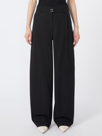 DETAILS Trousers in double cotton and viscose cady, with a straight line and slightly low waist. High belt loops at the waist support the double-wrap belt with S-buckle. A knitted insert on the inside of the leg adds an original detail. Straight trousers in double cotton and viscose cady, with ribbed knit inserts Straight fit with slightly low waist and wide leg Customised waistband interior. High belt loops with double-wrap fabric belt with S-buckle Knee-length cut and ribbed knit inserts on the inside of the leg Regular fit COMPOSITION AND CARE Fabric 53% cotton, 47% viscose; jersey fabric 100% polyamide. Do not wash; do not bleach; do not tumble dry; cool iron; professionally dry clean perchloroethylene - mild process; do not wet clean.; remove the buckle before washing. Distributed by Max Mara S.r.l., registered office in Reggio Emilia (Italy), Via Giulia Maramotti 4, 42124 (IT)