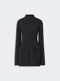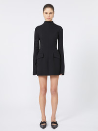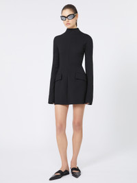DETAILS Short dress with graphic lines, featuring shaping that outlines the silhouette, accentuating the hips. Dress in stretch wool-blend gabardine Slim-fit at the waist with rounded hips Raised collar with concealed back zip Darts and shaped side panel construction Flapped side pockets Fitted waist COMPOSITION AND CARE Outer fabric 53% polyester, 43% virgin wool, 4% elastane; - except joining thread; inner fabric 100% polyester. Do not wash; do not bleach; do not tumble dry; cool iron; professionally dry clean perchloroethylene - mild process; do not wet clean. Distributed by Max Mara S.r.l., registered office in Reggio Emilia (Italy), Via Giulia Maramotti 4, 42124 (IT)