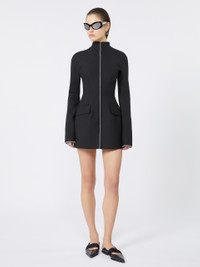 DETAILS The new mini dress boasts a graphic cut, a glamorous touch and a sinuous silhouette. The rhinestone appliques on the front seam and sleeve hems add a shiny touch. Dress in double-faced stretch wool-blend fabric Slim waist cut with rounded hips Raised neck with a concealed back zip Design reinforced with darts and contoured side panels Slim waist cut COMPOSITION AND CARE Outer fabric 51% polyester, 44% virgin wool, 5% elastane; - except joining thread, exclusive of decoration; inner fabric 100% polyester. Do not wash; do not bleach; do not tumble dry; cool iron; professionally dry clean perchloroethylene - mild process; do not wet clean.; put this item into a string bag before washing it.; do not iron the decoration. Distributed by Max Mara S.r.l., registered office in Reggio Emilia (Italy), Via Giulia Maramotti 4, 42124 (IT)