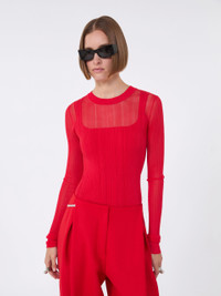 DETAILS Crew-neck jumper made in a stretch viscose blend, with a special semi-sheer ribbed finish with a trompe l'oeil effect. The streamlined fit becomes opaque over the body, creating a sleek tank top silhouette. - Stretch viscose blend jumper - Ribbed knit - Covering, tank top-effect trompe l'oeil - Regular fit COMPOSITION AND CARE Knitted fabric 1 72% viscose, 28% polyester; knitted fabric 2 76% viscose, 24% polyamide. Hand wash cold (40°c max); do not bleach; do not tumble dry; flat drying in the shade; cool iron; professionally dry clean perchloroethylene - mild process; do not wet clean.; iron with a cloth between.; using neutral detergent. Distributed by Max Mara S.r.l., registered office in Reggio Emilia (Italy), Via Giulia Maramotti 4, 42124 (IT) Collection: Sportmax Product code: 2361076106004 - SPXBUONO