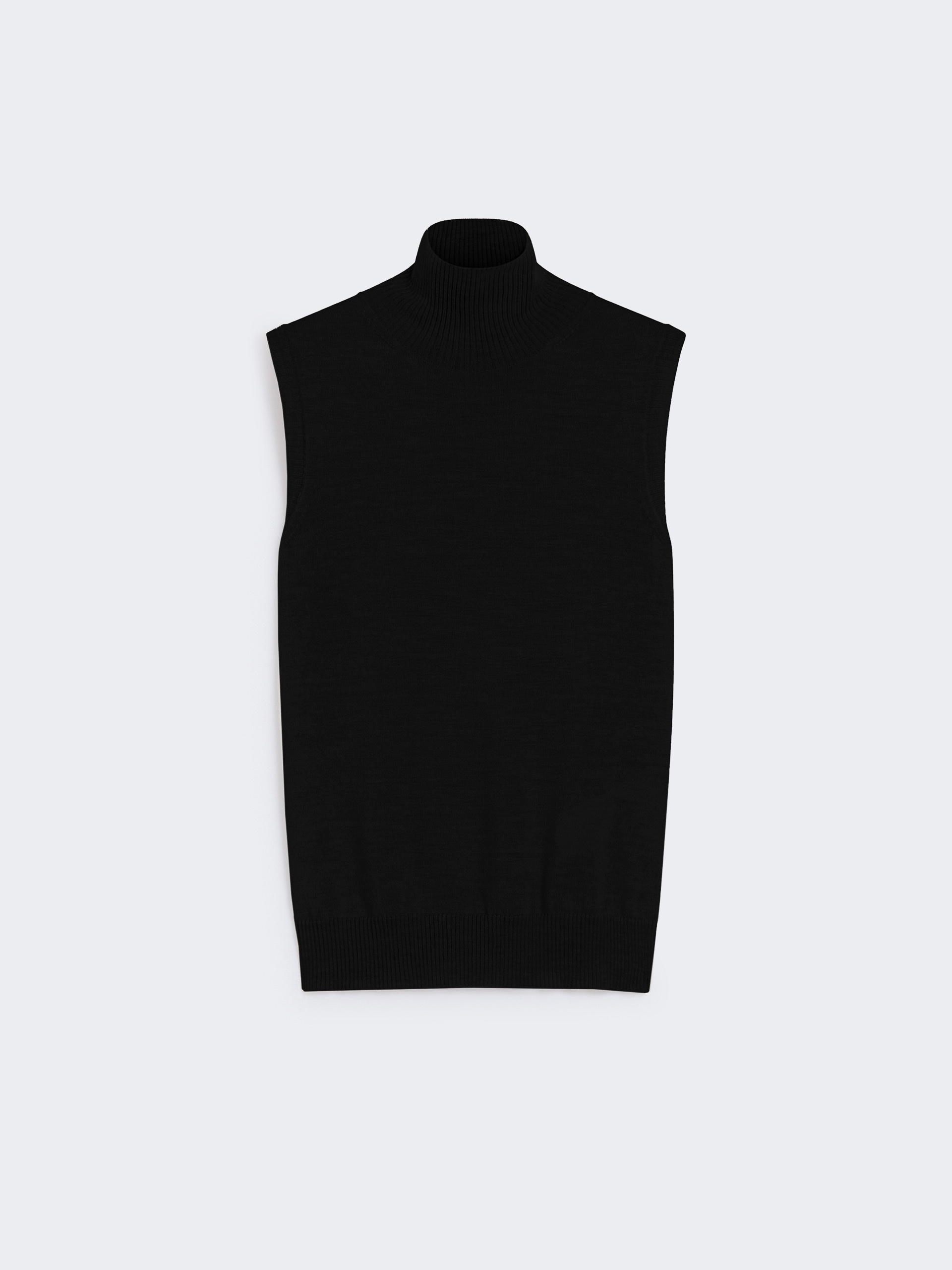 DETAILS Sleeveless turtleneck in fine pure wool yarn, with high neck and dropped details along the neckline and armhole. Edges and hem of garment made of ribbed knit. - Pure wool cardigan - Soft fit with feminine line - High neck - Edges and hem of garment in ribbed knit. - Dropped details - Regular fit COMPOSITION AND CARE 100% virgin wool. Hand wash cold; do not bleach; do not tumble dry; flat drying in the shade; cool iron; professionally dry clean perchloroethylene - mild process; do not wet clean.; iron with a cloth between.; using neutral detergent. Distributed by Max Mara S.r.l., registered office in Reggio Emilia (Italy), Via Giulia Maramotti 4, 42124 (IT)