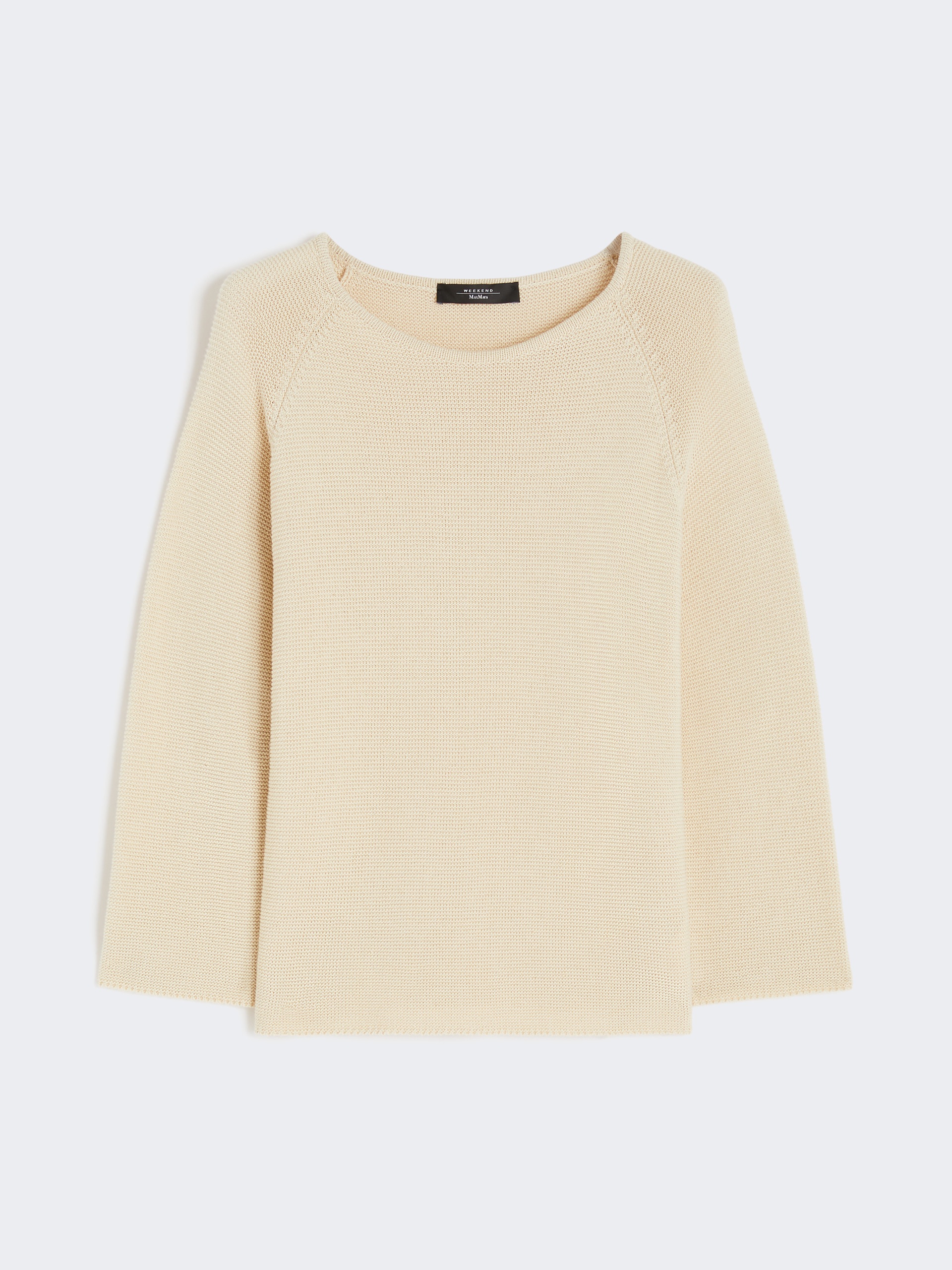DETAILS Relaxed-fit link-stitched sweater. - Pure cotton yarn sweater - Rib-knit boat neckline - Raglan bracelet sleeves - Regular length - Raw-cut cuffs and hem COMPOSITION AND CARE 100% cotton. Hand wash cold; do not bleach; do not tumble dry; flat drying in the shade; cool iron; professionally dry clean perchloroethylene - mild process; do not wet clean.; iron with a cloth between.; using neutral detergent. Distributed by Max Mara S.r.l., registered office in Reggio Emilia (Italy), Via Giulia Maramotti 4, 42124 (IT)