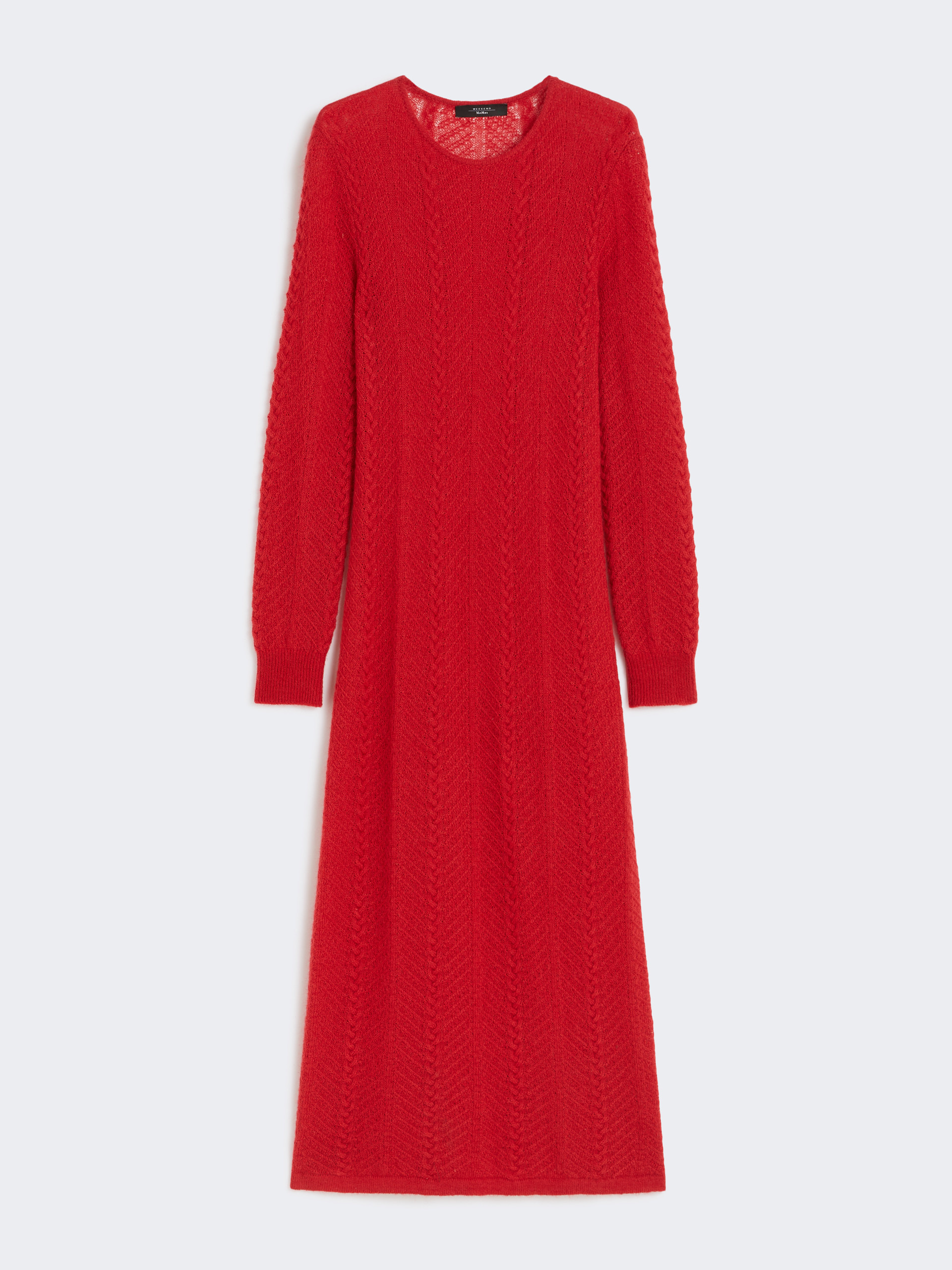 DETAILS "Fine Settimana", the capsule collection designed by Giuliva Heritage for Weekend Max Mara: relaxed tailoring, layering and conscious femininity. Mohair blend dress Loose fit Crew neck and long sleeves Cable stitch details Ribbed trim COMPOSITION AND CARE 34% polyamide, 30% acrylic, 28% mohair, 8% polyester. Hand wash cold (40°c max); do not bleach; do not tumble dry; flat drying in the shade; cool iron; professionally dry clean perchloroethylene - mild process; do not wet clean.; iron with a cloth between.; using neutral detergent. Distributed by Max Mara S.r.l., registered office in Reggio Emilia (Italy), Via Giulia Maramotti 4, 42124 (IT)