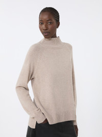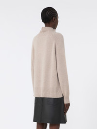 DETAILS Turtleneck jumper with small side slits and hem slightly longer at the back. Pure cashmere yarn turtleneck Loose fit High neck Long raglan sleeves Ribbed trim COMPOSITION AND CARE Knitted fabric 100% cashmere; knitted fabric except joining thread. Hand wash cold (40°c max); do not bleach; do not tumble dry; flat drying in the shade; cool iron; professionally dry clean perchloroethylene - mild process; do not wet clean.; using neutral detergent.; iron with a cloth between. Distributed by Max Mara S.r.l., registered office in Reggio Emilia (Italy), Via Giulia Maramotti 4, 42124 (IT)
