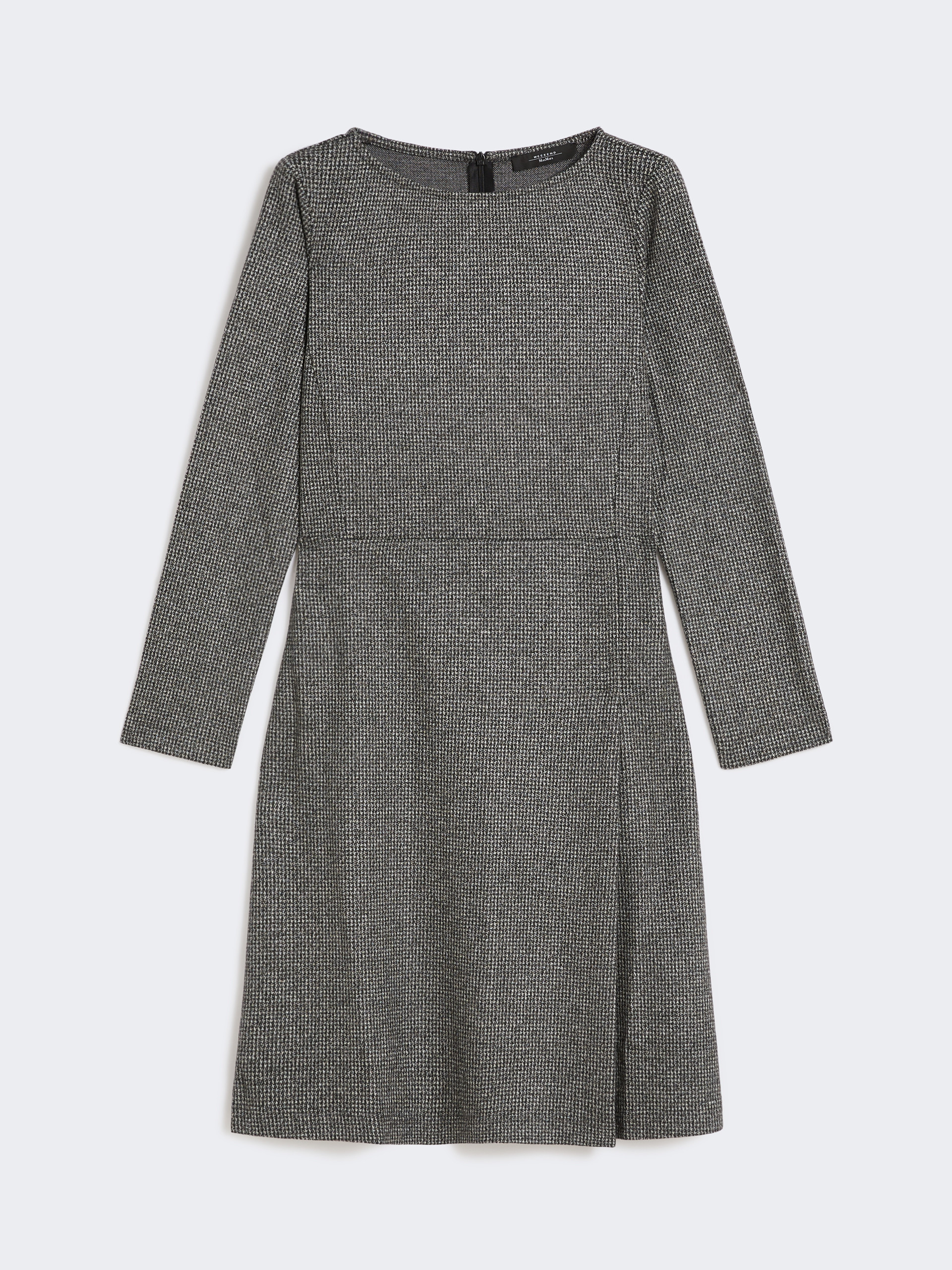 DETAILS Short dress, cut at the waist with a side-offset pleat motif that brings movement to the garment. Viscose-blend jacquard jersey dress Slightly fitted line Boat neck Long set-in sleeves Side inset pockets Unlined COMPOSITION AND CARE 77% viscose, 22% polyester, 1% elastane. Do not wash; do not bleach; do not tumble dry; cool iron; professionally dry clean perchloroethylene - mild process; do not wet clean.; iron with a cloth between. Distributed by Max Mara S.r.l., registered office in Reggio Emilia (Italy), Via Giulia Maramotti 4, 42124 (IT)