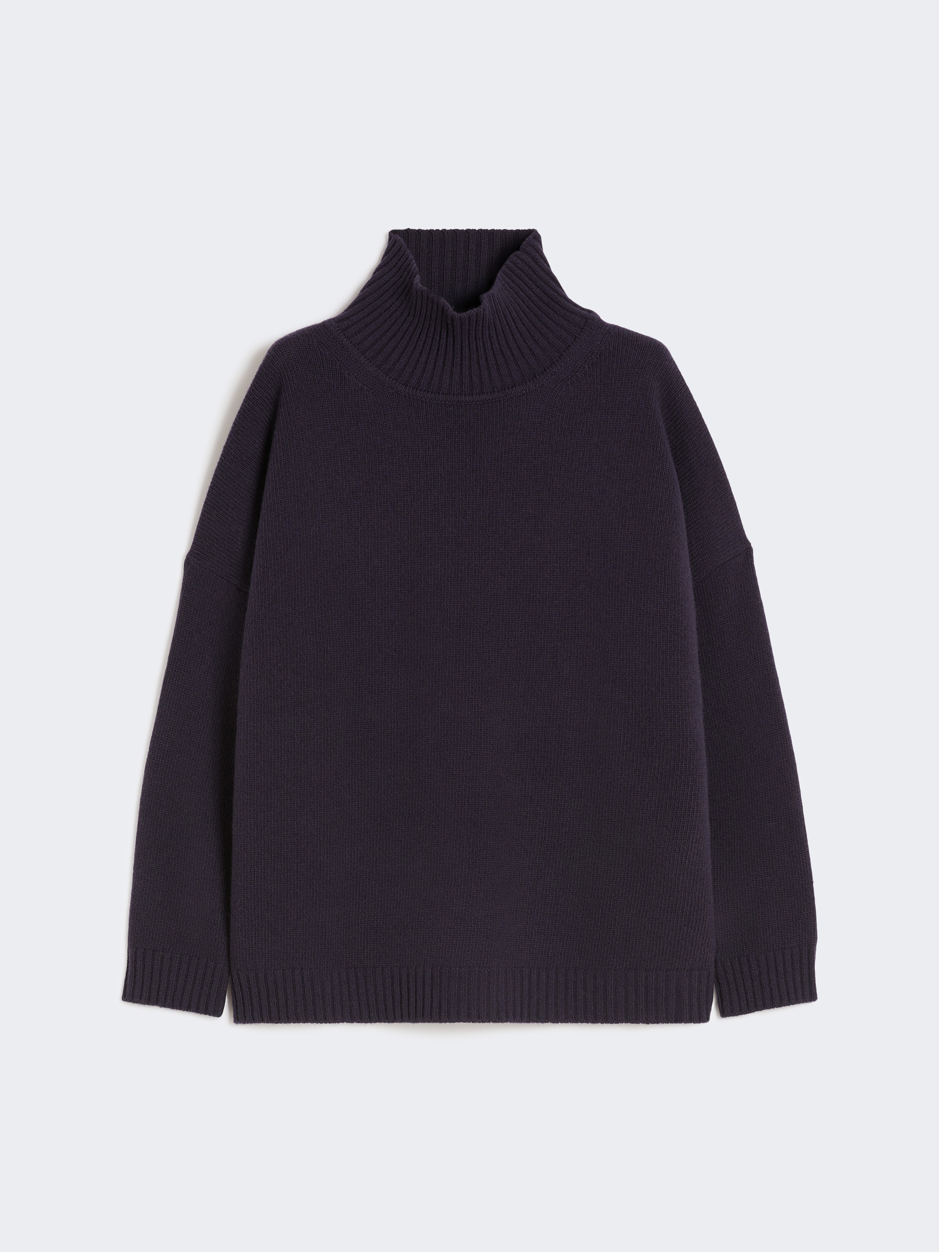DETAILS Turtleneck jumper with a slightly oversized fit. Pure wool plain-knit jumper Loose fit High neck Long sleeves with dropped shoulders Ribbed edges COMPOSITION AND CARE 100% virgin wool. Hand wash cold (40°c max); do not bleach; do not tumble dry; flat drying in the shade; cool iron; professionally dry clean perchloroethylene - mild process; do not wet clean.; iron with a cloth between.; using neutral detergent. Distributed by Max Mara S.r.l., registered office in Reggio Emilia (Italy), Via Giulia Maramotti 4, 42124 (IT)