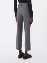 DETAILS Cigarette trousers with cropped ankle cut and darts at the waist that give volume. Stretch comfort wool flannel trousers Slightly slim fit straight line Fastening with a wide waistband tab, zip fly and small hook Slant pockets at the sides Double welt pockets with button at the back Belt loops and trouser crease COMPOSITION AND CARE 99% virgin wool, 1% elastane. Do not wash; do not bleach; do not tumble dry; cool iron; professionally dry clean perchloroethylene - mild process; do not wet clean. Distributed by Max Mara S.r.l., registered office in Reggio Emilia (Italy), Via Giulia Maramotti 4, 42124 (IT)