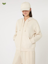 DETAILS Soft-textured sweatshirt featuring a drawstring hood and WKND ribbons. Main fabric with at least 50% cotton fibers, grown and processed according to organic farming systems Cotton jersey sweatshirt Regular fit Drop-shoulder long sleeves Front zip fastening Kangaroo front pocket with embroidered logo detail Rib-knit cuffs and trim COMPOSITION AND CARE Jersey fabric 87% cotton, 13% polyester; - exclusive of embroideries. Machine wash cold delicate cycle; do not bleach; do not tumble dry; flat drying in the shade; cool iron; do not dry clean; professional wet cleaning - very mild process.; iron with a cloth between.; using neutral detergent.; turn the articles inside out before washing.; to be ironed on reverse. Distributed by Max Mara S.r.l., registered office in Reggio Emilia (Italy), Via Giulia Maramotti 4, 42124 (IT)