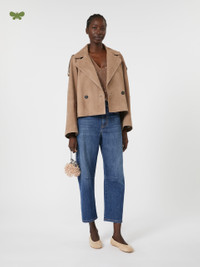 DETAILS Barrel-leg jeans featuring internal sewn dart detail at the knees. Main fabric with at least 50% cotton fibers, grown and processed according to organic farming systems Jeans in authentic stretch cotton denim Wide fit that tapers at the hem Fly-covered zip and tack button fastening 5-pocket model Rear waist yoke Metal rivets and contrasting seams COMPOSITION AND CARE 99% cotton, 1% elastane. Machine wash cold delicate cycle; do not bleach; do not tumble dry; line drying in the shade; cool iron; do not dry clean.; wash the garment while it is fastened.; don’t iron the labels.; turn the articles inside out before washing.; take care when wearing light-coloured clothes or accessories because, with the heat of the body, the indigo fabric , may fade and stain. be careful while sitting on light coloured surfaces, especially if wet. wash garments separately and always turned inside out. hang the garment turned inside out by avoiding to expose it to direct sunlight. avoid removing isolated stains.; contains non-textile parts of animal origin. Distributed by Max Mara S.r.l., registered office in Reggio Emilia (Italy), Via Giulia Maramotti 4, 42124 (IT)