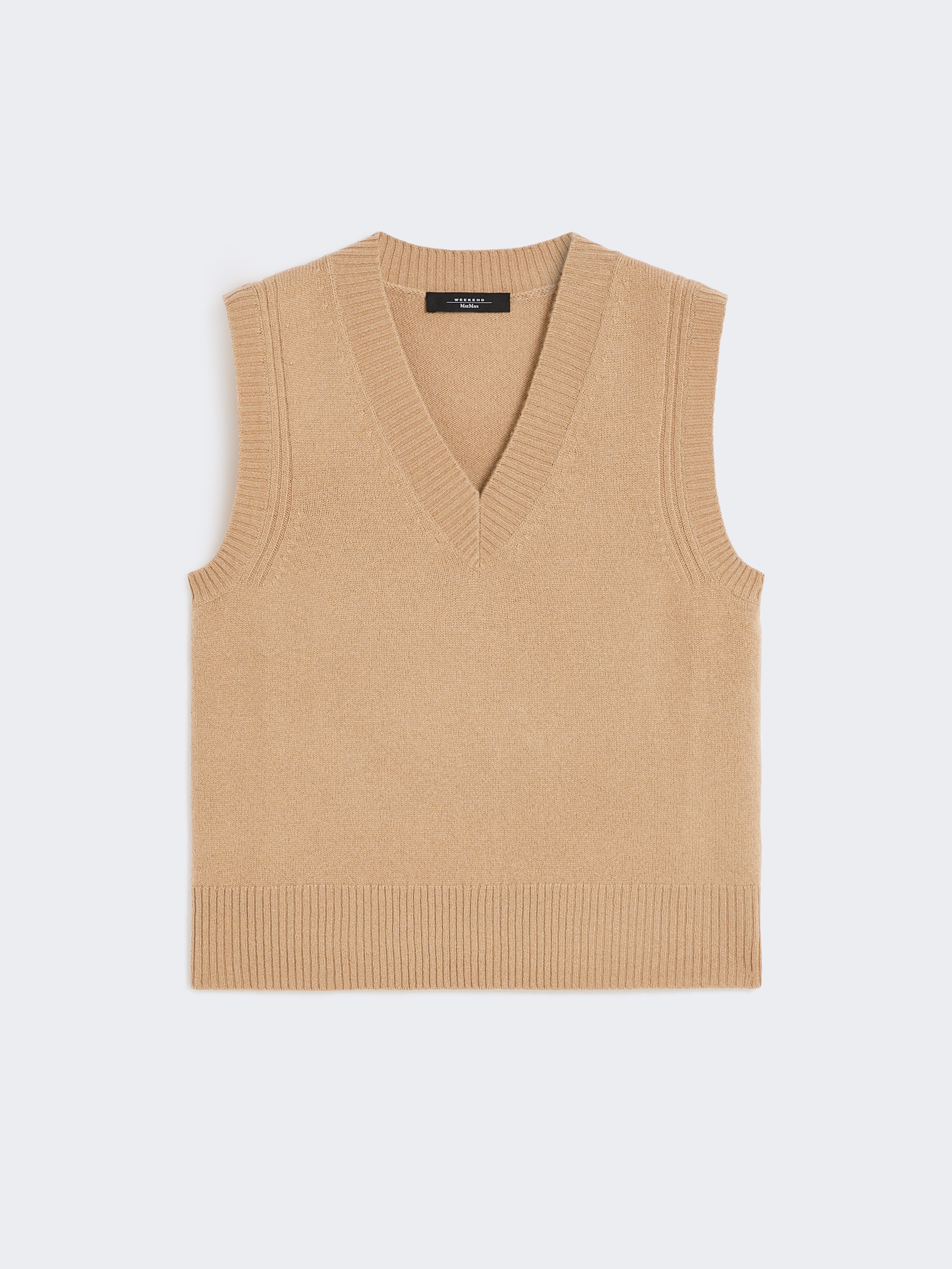 DETAILS Regular-fit gilet in a plain-knit finish. Gilet in pure cashmere yarn Regular length V neck Sleeveless Ribbed edges COMPOSITION AND CARE 100% cashmere. Hand wash cold (40°c max); do not bleach; do not tumble dry; flat drying in the shade; cool iron; professionally dry clean perchloroethylene - mild process; do not wet clean.; using neutral detergent.; iron with a cloth between. Distributed by Max Mara S.r.l., registered office in Reggio Emilia (Italy), Via Giulia Maramotti 4, 42124 (IT)