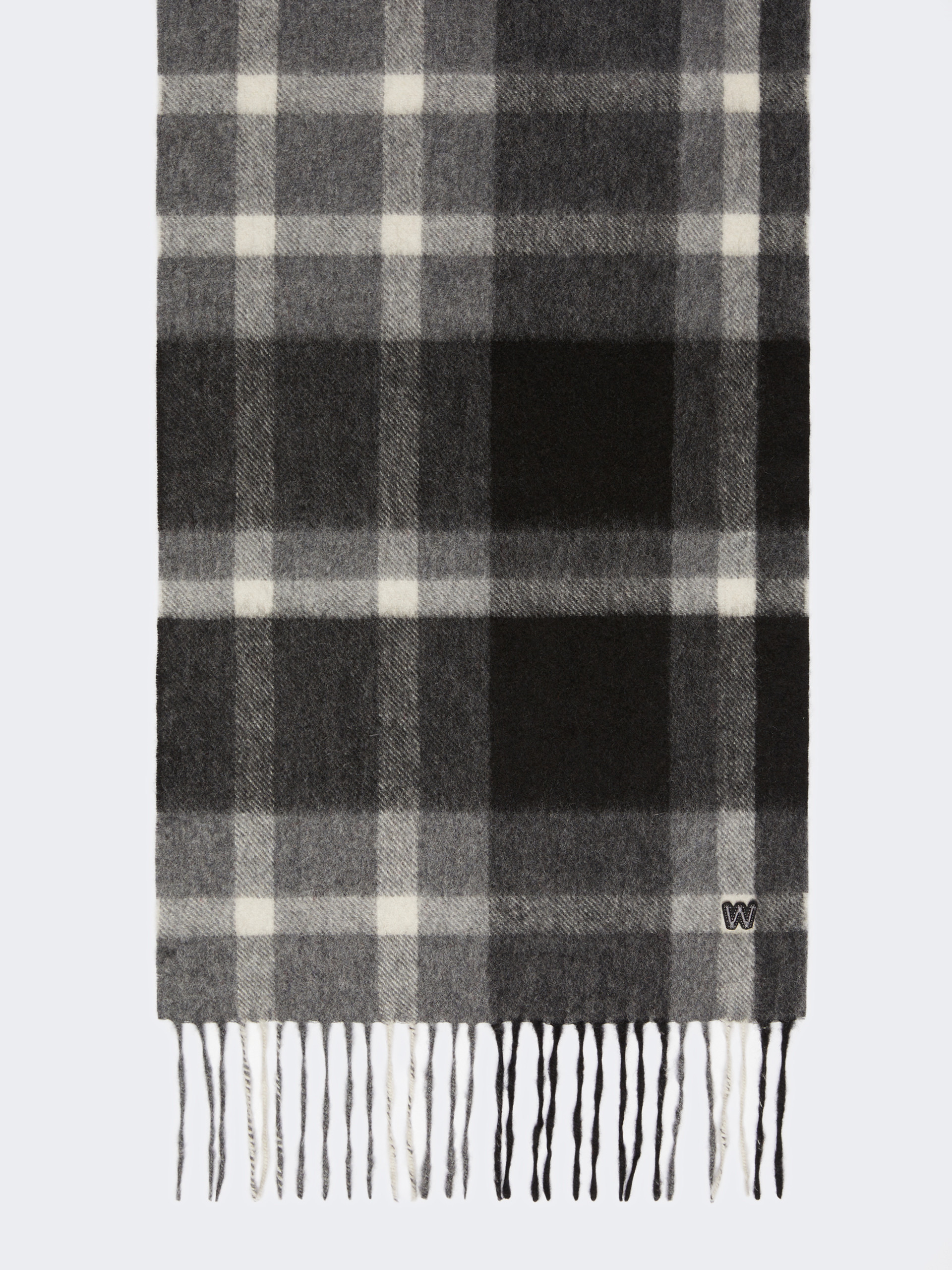 DETAILS Long rectangular scarf, embellished with a jacquard motif and an all-over tartan design. Pure cashmere knit scarf Fringe motif on the short sides Small "W" patch applied on the hem Measurements: 162 x 30 cm COMPOSITION AND CARE 100% cashmere. Do not wash; do not bleach; do not tumble dry; cool iron; professionally dry clean perchloroethylene - mild process; do not wet clean. Distributed by Max Mara S.r.l., registered office in Reggio Emilia (Italy), Via Giulia Maramotti 4, 42124 (IT)