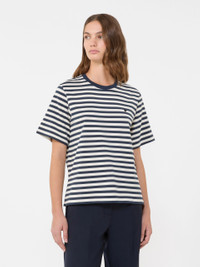 DETAILS Regular-fit T-shirt customised with small embroidered butterfly logo detail on the chest. - Pure cotton jersey T-shirt - Straight fit with side slits - Rib-knit crew neckline - Short set-in sleeves COMPOSITION AND CARE Jersey fabric 100% cotton; - exclusive of embroideries. Machine wash cold delicate cycle; do not bleach; do not tumble dry; flat drying in the shade; cool iron; professionally dry clean perchloroethylene - mild process; professional wet cleaning - very mild process.; iron with a cloth between.; using neutral detergent. Distributed by Max Mara S.r.l., registered office in Reggio Emilia (Italy), Via Giulia Maramotti 4, 42124 (IT) Collection: Weekend Max Mara Product code: 5971036106009 - WKDVENACO