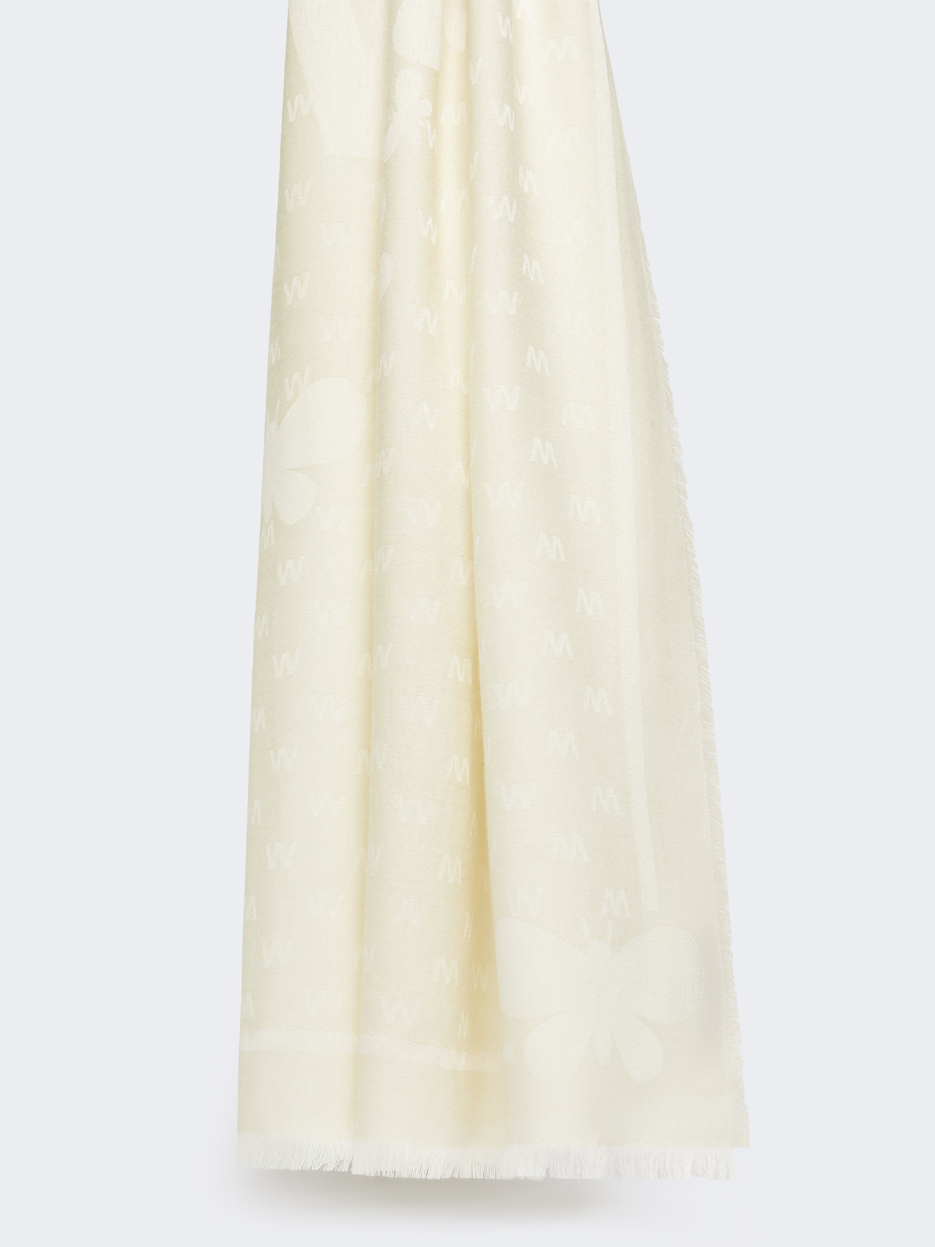DETAILS Wide-volume shawl embellished with a jacquard design that creates butterfly details on a background with an all-over micro "W" logo. Viscose and wool yarn shawl Fringed edges Measurements: 138 x 134 cm COMPOSITION AND CARE 55% viscose, 45% virgin wool. Do not wash; do not bleach; do not tumble dry; cool iron; professionally dry clean perchloroethylene - mild process; do not wet clean. Distributed by Max Mara S.r.l., registered office in Reggio Emilia (Italy), Via Giulia Maramotti 4, 42124 (IT)