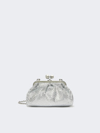 DETAILS Small Pasticcino bag, a remarkable clutch that adds a personal, captivating touch to your daily style. Satin bag entirely covered in rhinestones Striped fabric lining with customised label Long removable chain shoulder strap with leather strap pad Metal fastening with personalized Weekend Max Mara spheres Measurements: 19 x 10 x 15 cm. COMPOSITION AND CARE Handbag in 97% polyester, 3% elastane; decorations in glass; lining in 100%polyester. Distributed by Max Mara S.r.l., registered office in Reggio Emilia (Italy), Via Giulia Maramotti 4, 42124 (IT)