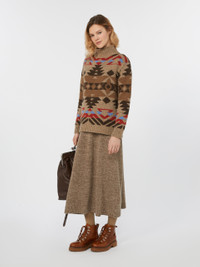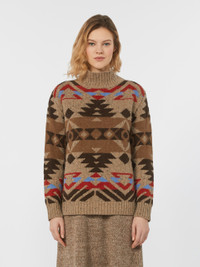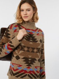 DETAILS Turtleneck jumper, featuring a jacquard knit that creates a contrasting all-over pattern. Alpaca and wool tweed turtleneck Regular fit and medium length High neck Long sleeves with dropped shoulders Ribbed edges COMPOSITION AND CARE 33% wool, 27% acrylic, 24% alpaca, 8% polyamide, 8% viscose. Hand wash cold (40°c max); do not bleach; do not tumble dry; flat drying in the shade; cool iron; professionally dry clean perchloroethylene - mild process; do not wet clean.; iron with a cloth between.; using neutral detergent. Distributed by Max Mara S.r.l., registered office in Reggio Emilia (Italy), Via Giulia Maramotti 4, 42124 (IT)