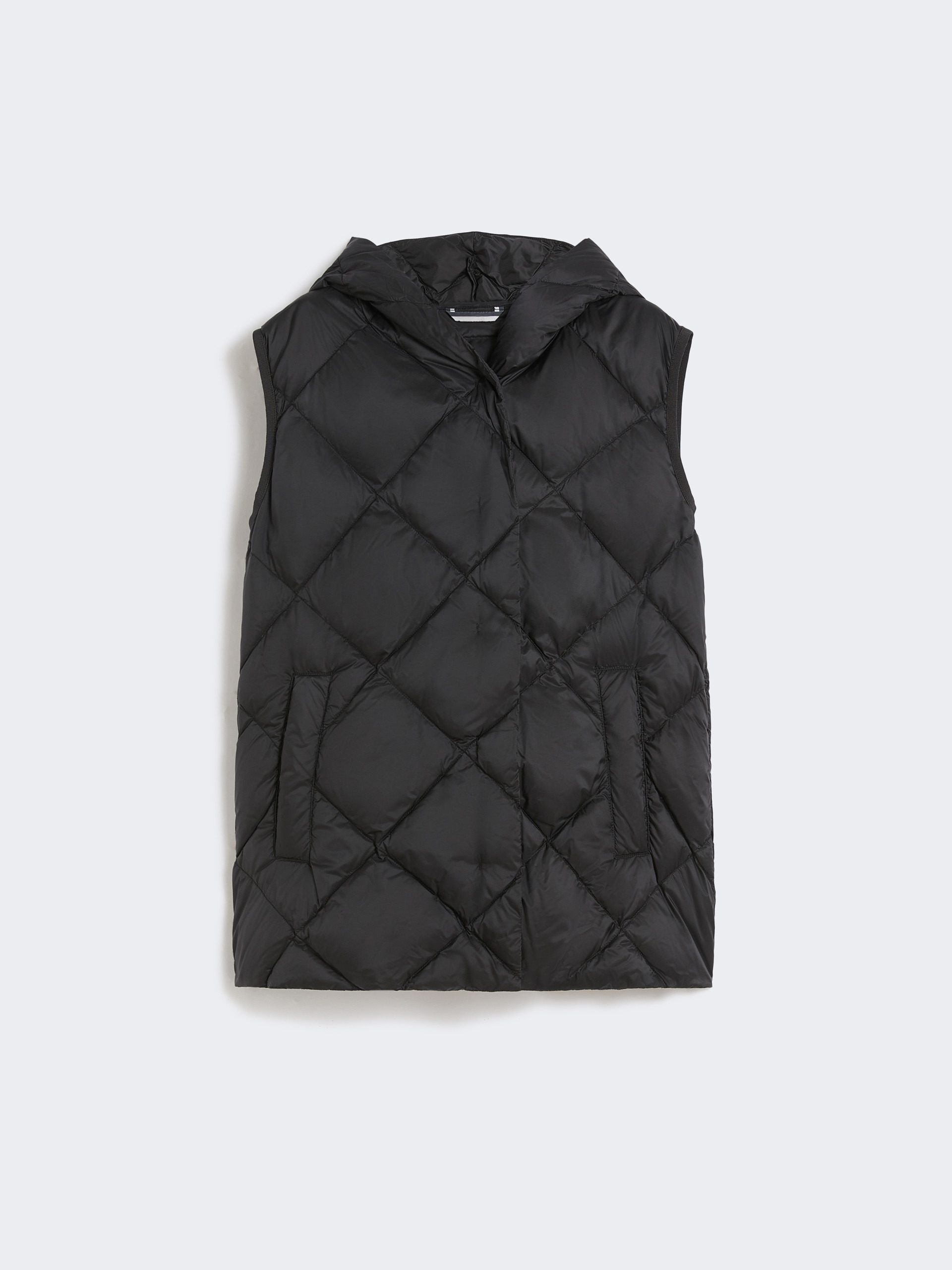 DETAILS Hooded gilet, customised with butterfly emblem on the back of the neck. Gilet in water-repellent tech fabric Regular fit Armhole with grosgrain ribbon trim Front fastening with snap buttons Welt pockets on the sides Goose-down padding COMPOSITION AND CARE Fabric 100% polyester; lining 100% polyester; - exclusive of decoration; with quilting virgin down. Machine wash cold delicate cycle; do not bleach; do not tumble dry; line drying in the shade; cool iron; professionally dry clean perchloroethylene - mild process.; home washing: wash in lukewarm water with a gentle wash machine program. use liquid detergent with neuter ph. rinse several times until clear water is discharged. dry away from direct heating. squeeze and stretch to favor volume recovery.; wash the garment while it is fastened.; don’t iron the labels.; contains non-textile parts of animal origin. Distributed by Max Mara S.r.l., registered office in Reggio Emilia (Italy), Via Giulia Maramotti 4, 42124 (IT)