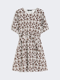 DETAILS Short dress featuring a waistline-accentuating matching belt. Dress in pure cotton interlock jersey fabric All-over printed pattern Flared fit Crew-neck Drop-shoulder short sleeves Gathered cuffs COMPOSITION AND CARE 100% cotton. Machine wash cold delicate cycle; do not bleach; do not tumble dry; flat drying in the shade; cool iron; professionally dry clean perchloroethylene - mild process; professional wet cleaning - very mild process.; iron with a cloth between.; using neutral detergent.; turn the articles inside out before washing.; to be ironed on reverse. Distributed by Max Mara S.r.l., registered office in Reggio Emilia (Italy), Via Giulia Maramotti 4, 42124 (IT)