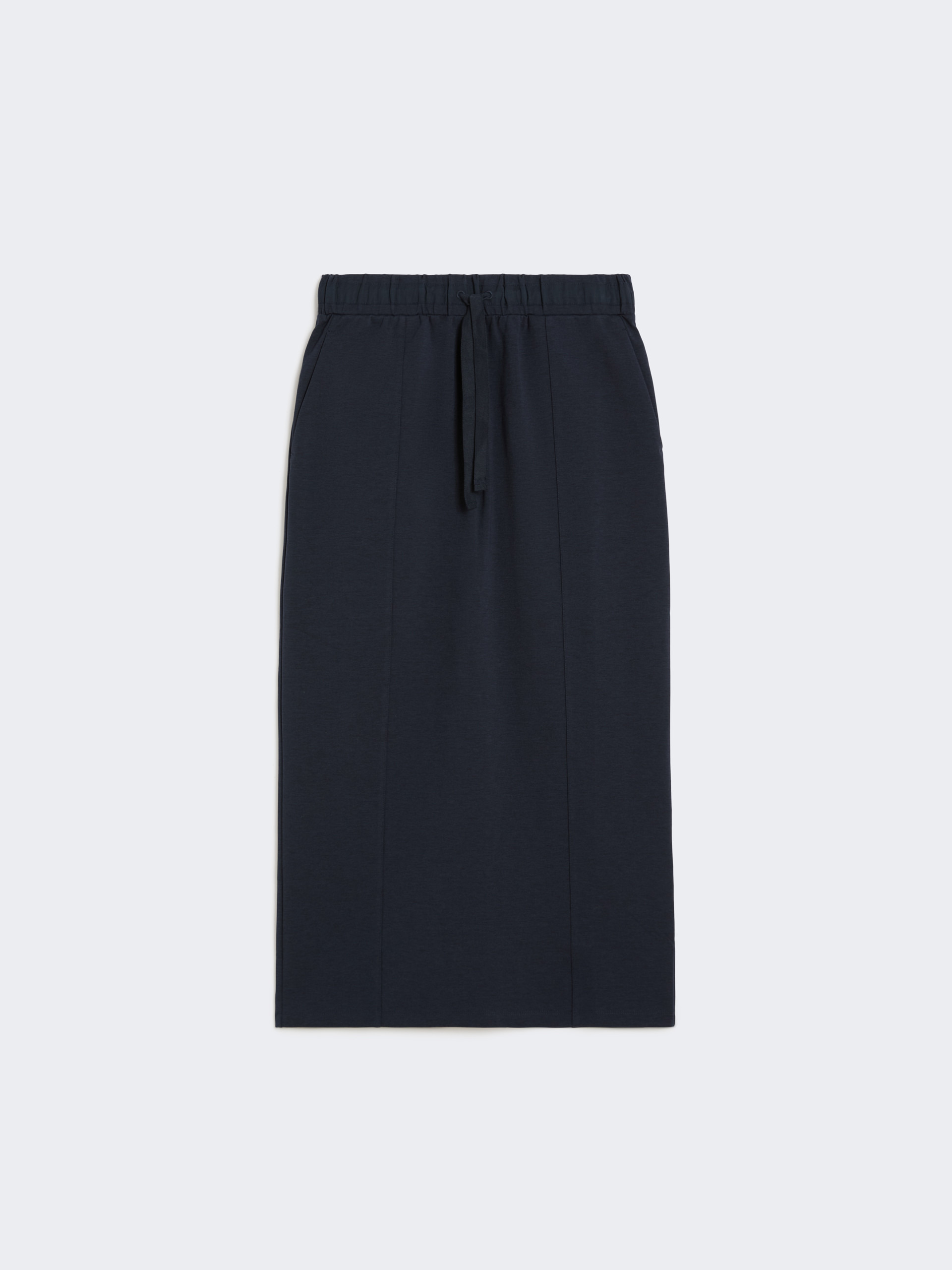 DETAILS Long skirt featuring dart detail that accentuates the feminine silhouette. Milano-knit cotton and lyocell jersey skirt Straight fit Drawstring-adjustable elasticated poplin waist Slant side pockets Unlined model COMPOSITION AND CARE 38% lyocell, 33% cotton, 23% polyester, 6% elastane. Machine wash cold delicate cycle; do not bleach; do not tumble dry; flat drying in the shade; cool iron; professionally dry clean perchloroethylene - mild process; professional wet cleaning - very mild process.; iron with a cloth between.; using neutral detergent.; turn the articles inside out before washing.; to be ironed on reverse. Distributed by Max Mara S.r.l., registered office in Reggio Emilia (Italy), Via Giulia Maramotti 4, 42124 (IT)