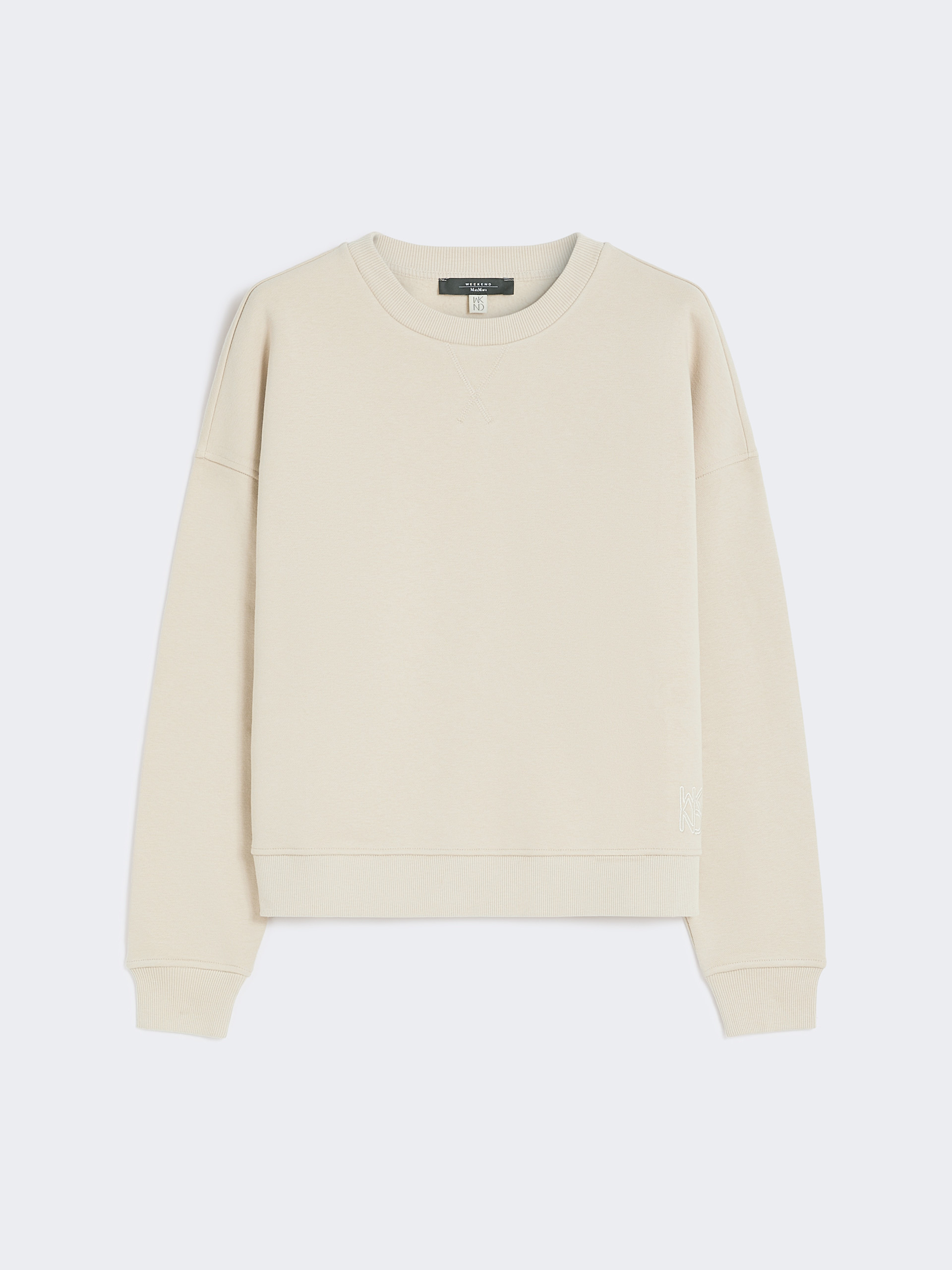 DETAILS Cropped sweatshirt with a soft brushed texture and embroidered logo detail at the hem. Main fabric with at least 50% cotton fibers, grown and processed according to organic farming systems Cotton jersey sweatshirt Boxy fit Long low set-in sleeves Sewn V-detail on the neck Side slits with zip detail at the sides Rib-knit trims COMPOSITION AND CARE Jersey fabric 87% cotton, 13% polyester; - exclusive of embroideries. Machine wash cold delicate cycle; do not bleach; do not tumble dry; flat drying in the shade; cool iron; professionally dry clean perchloroethylene - mild process; professional wet cleaning - very mild process.; iron with a cloth between.; using neutral detergent.; turn the articles inside out before washing.; to be ironed on reverse. Distributed by Max Mara S.r.l., registered office in Reggio Emilia (Italy), Via Giulia Maramotti 4, 42124 (IT)