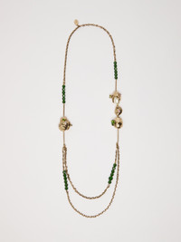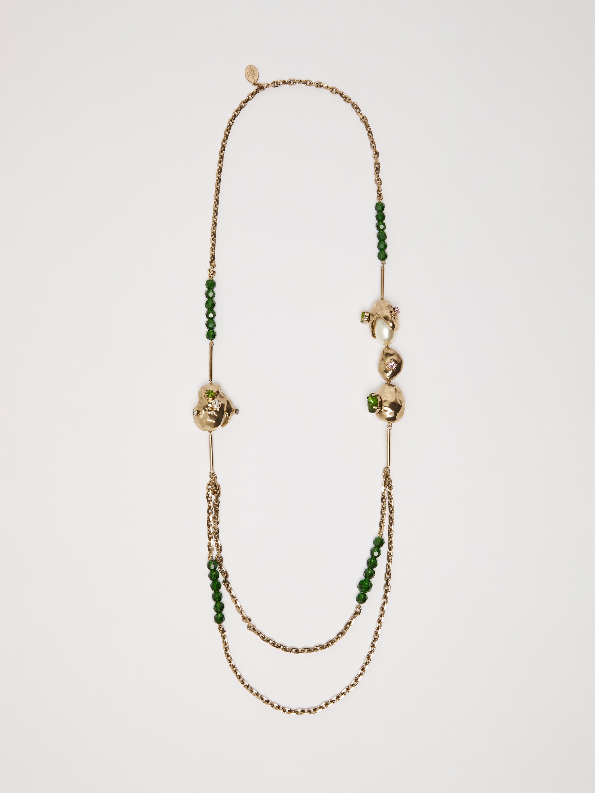 DETAILS Long double-strand necklace comprising irregular-shaped resin elements. - Galvanised metal necklace - Glass details - Branded tag at the back COMPOSITION AND CARE Style in metal; with details in acrylic resin, glass. Distributed by Max Mara S.r.l., registered office in Reggio Emilia (Italy), Via Giulia Maramotti 4, 42124 (IT)