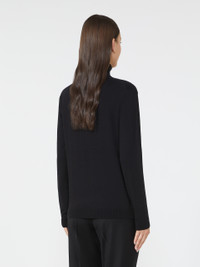 DETAILS Turtleneck jumper in a plain knit. Wool and silk knit turtleneck Relaxed fit High neck Long set-in sleeves Ribbed trim COMPOSITION AND CARE 48% silk, 26% wool, 23% polyamide, 3% elastane. Hand wash cold (40°c max); do not bleach; do not tumble dry; flat drying in the shade; cool iron; professionally dry clean perchloroethylene - mild process; do not wet clean.; iron with a cloth between.; using neutral detergent. Distributed by Max Mara S.r.l., registered office in Reggio Emilia (Italy), Via Giulia Maramotti 4, 42124 (IT)