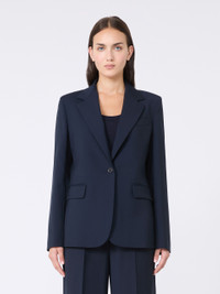 DETAILS Single-breasted blazer embellished with tailored-style details. Blazer in natural stretch pure woollen cloth Figure-skimming fit with a rear vent Lapel collar Long set-in sleeves with buttoned hem detail One-button fastening Breast pocket and flap front pockets Lined model COMPOSITION AND CARE Fabric 100% virgin wool; lining 100% polyester. Do not wash; do not bleach; do not tumble dry; cool iron; professionally dry clean perchloroethylene - mild process; do not wet clean.; wash the garment while it is fastened.; contains non-textile parts of animal origin. Distributed by Max Mara S.r.l., registered office in Reggio Emilia (Italy), Via Giulia Maramotti 4, 42124 (IT)