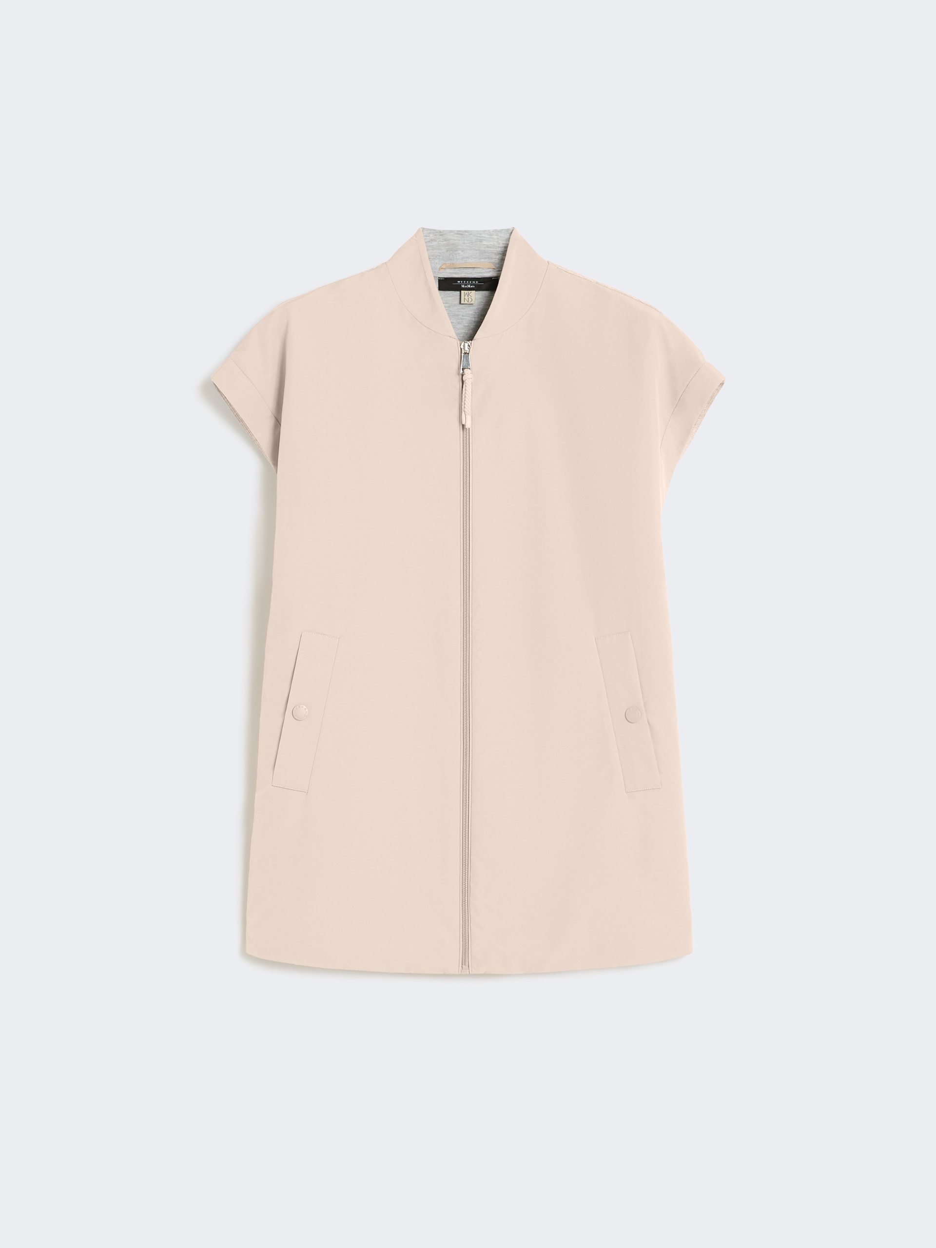 DETAILS Enveloping, comfort-fit gilet featuring rubber WKND logo detail at the hem. Water-repellent technical canvas gilet with a jersey interior Scuba jersey back Rib-knit bomber-style collar Dropped shoulders Front zip fastening Press stud-fastening welt side pockets Inner drawstring-adjustable trim COMPOSITION AND CARE Front 50% polyester, 25% cotton, 25% polyamide; back 96% viscose, 4% elastane; lining 96% viscose, 4% elastane. Hand wash cold (40°c max); do not bleach; do not tumble dry; drip line drying in the shade; cool iron; do not dry clean; do not wet clean.; iron with a cloth between.; using neutral detergent.; don’t rub.; turn the articles inside out before washing.; to be ironed on reverse. Distributed by Max Mara S.r.l., registered office in Reggio Emilia (Italy), Via Giulia Maramotti 4, 42124 (IT)